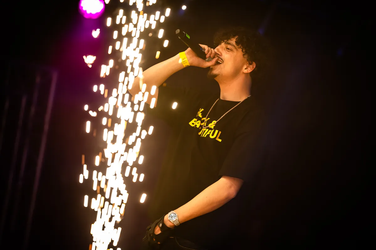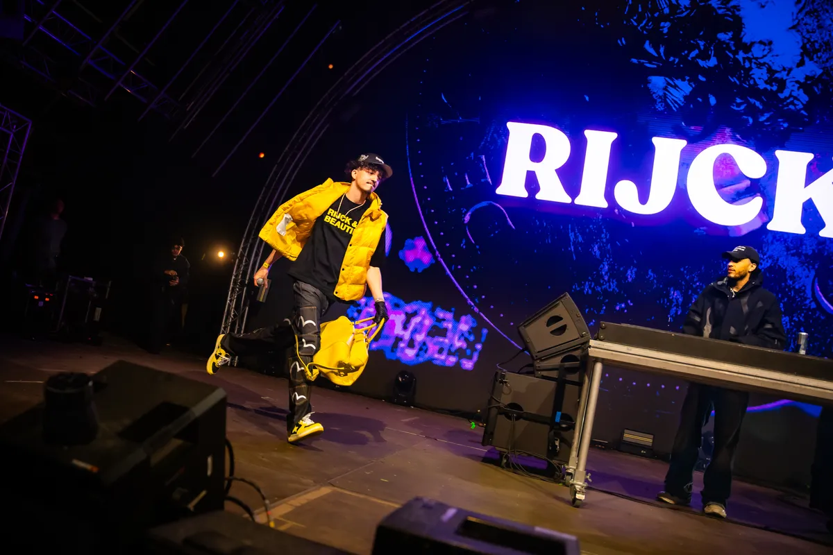 Bij de openingstrack horen we hem nauwelijks; de microfoon staat zo zacht, dat zijn stem verdrinkt in de beat. Pas vanaf het tweede nummer komt hij er beter doorheen, al blijven de beats dominanter. Zonde, want Rijck stáát er wel: gele bodywarmer, één handschoen, merkbroekje, shirt met ‘Rijck & beautiful’. Hij is flamboyant en zelfverzekerd, precies zoals zijn muziek dat hiphop met dance-elementen samensmeedt. “Rechterhand hoog in de lucht voordat ik zeg dat je naar beneden mag,” roept hij, het publiek doet braaf mee. Toch blijft het applaus de hele set opvallend lauw. Er staan zeker wat day-one-fans vooraan, maar het gros van de tent lijkt nog niet volledig overtuigd. Dat gevoel wordt versterkt door hoe de set is opgebouwd: korte tracks, snel door, weinig opbouw.