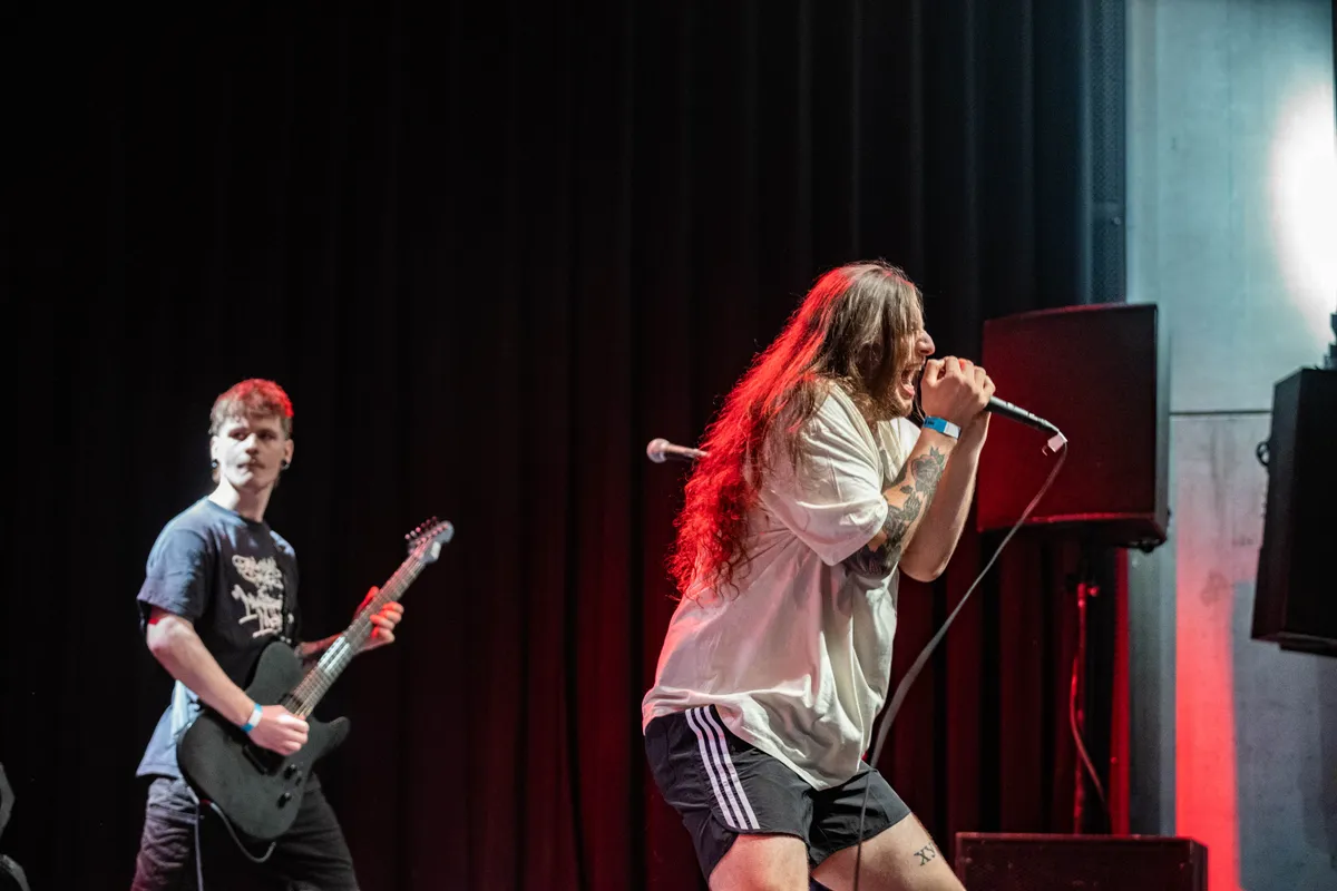 Hater, de Nederlandstalige hardcoreband uit Noord-Holland, drukt opnieuw hun stempel op de scene met een set die geen ruimte laat voor subtiliteit. Met (ex)-leden van onder andere Neuk!, Born From Pain en Herder weten we dat we iets ongefilterds en rauws kunnen verwachten – en dat is precies wat deze show levert. Hater opent direct krachtig met het nummer ‘Hou je bek dicht’ en dit zet de toon voor de rest van de avond. Dit is een band voor de hardcorepuristen; de ruwe, ongepolijste energie spat van het podium af, en het publiek – een mix van oude en nieuwe gezichten – duikt er vol overgave in. Voor wie op zoek is naar hardcore in zijn puurste vorm, is Hater een schot in de roos. Hoewel de zaal goed gevuld begint, is er tegen het einde van de show enig verloop te merken. Dit ligt echter niet aan de band, maar eerder aan de intensiteit van de avond, die voor sommige bezoekers misschien iets te veel wordt. Toch blijft een harde kern tot het einde staan, duidelijk hongerig naar meer van de bikkelharde sound van Hater. Met hun wortels diep verankerd in de Nederlandse hardcoretraditie, levert Hater een show die de oude hardcorefans zeker waarderen. Het is direct, agressief en compromisloos – precies zoals het hoort. (ZH)