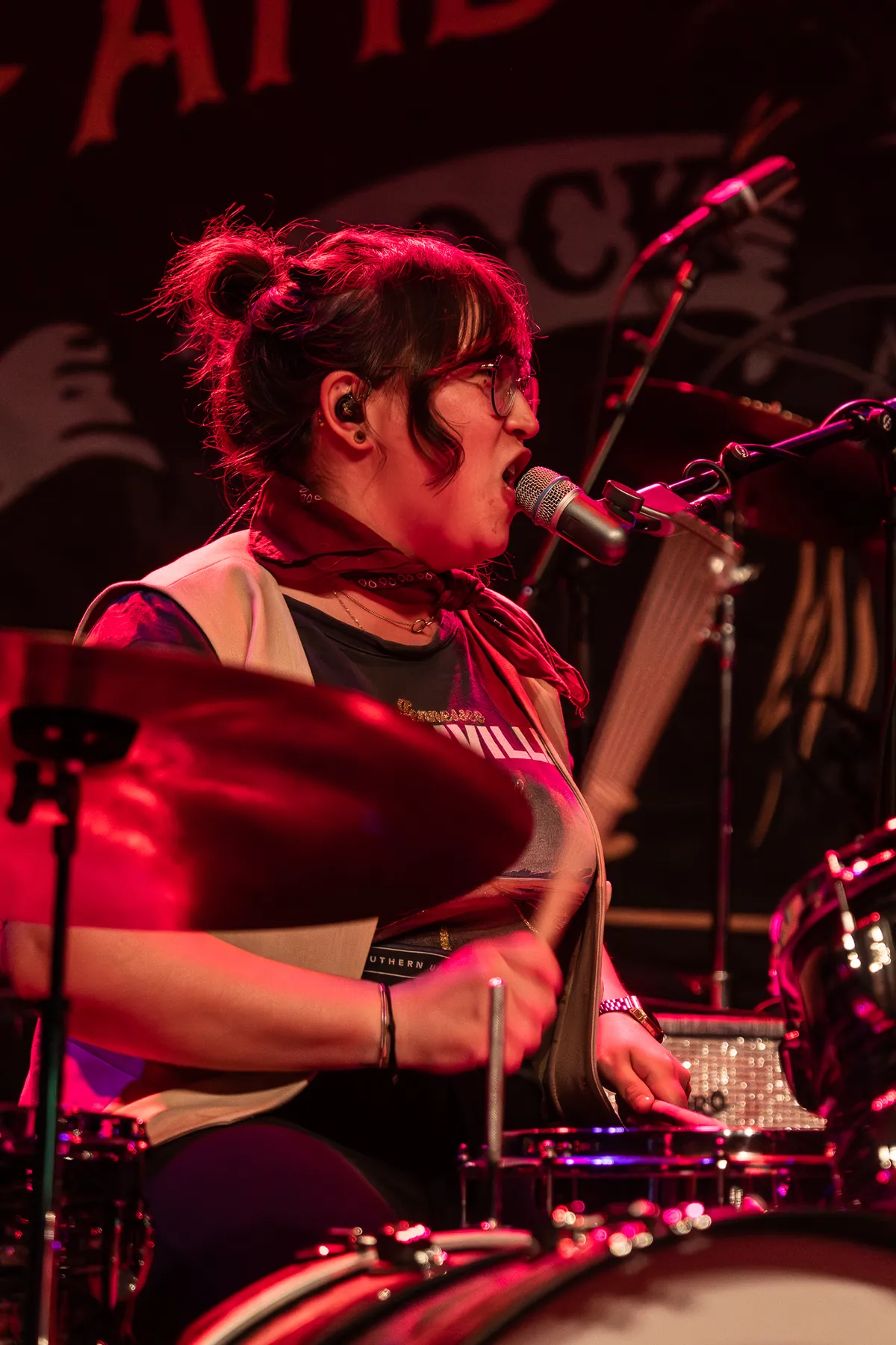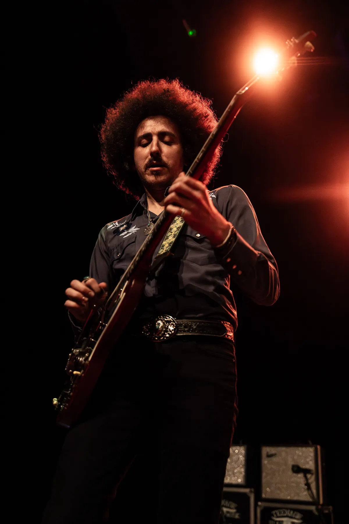 Maar terug naar de muziek, want die is ronduit fantastisch. Gitarist Henry James (Schneekluth), met een imposant afrokapsel, lijkt Prince te channelen – niet qua uiterlijk, maar qua spel zou het bijna een reïncarnatie van deze gitaarvirtuoos kunnen zijn. Dat komt voortdurend tot uiting, maar vooral ook in de funky intro van 'Red Moon Rising'. Qua vingervlugheid doet hij ook denken aan Eddie van Halen, en het publiek kan er niet genoeg van krijgen.