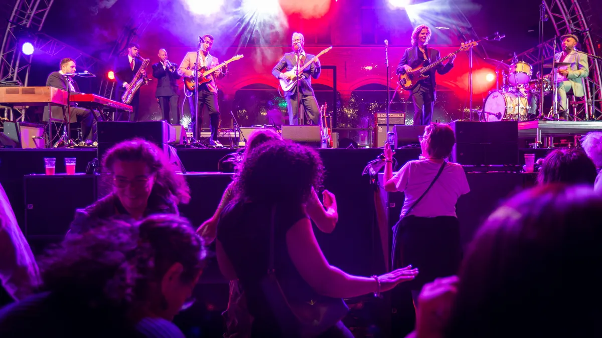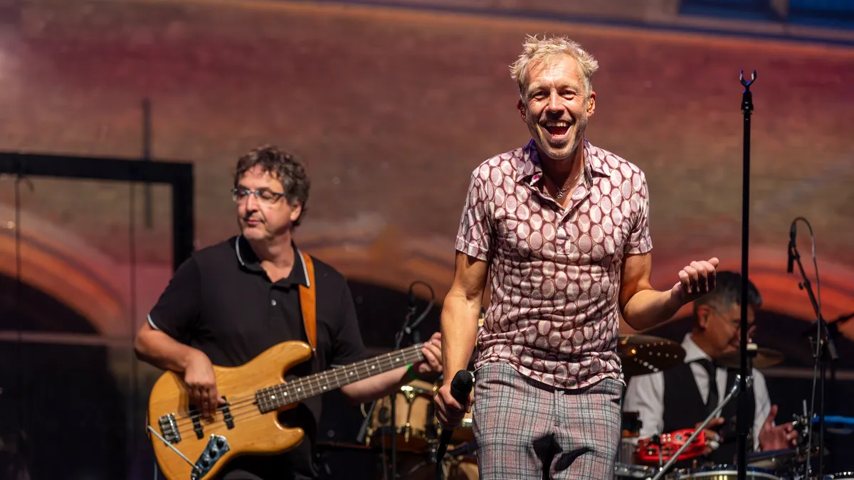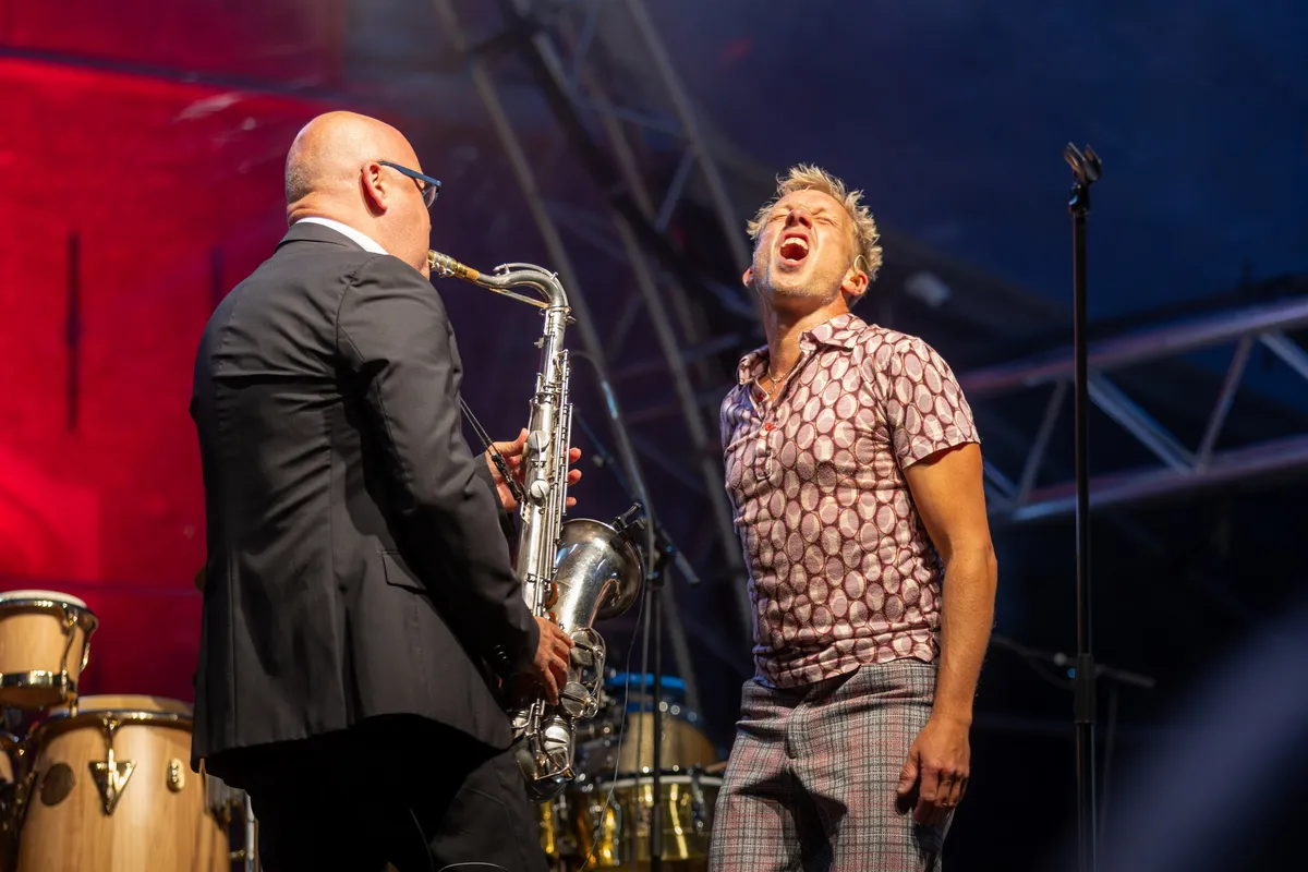 Het is nog maar net droog als Smelly Kitchen het plein vult met de instrumentale opener Booster!. De vijf blazers geven meteen een flinke dosis energie, terwijl de saxofoonsolo’s de toon zetten voor een feestelijke avond. “Put your hands up,” roept zanger Boaz Brom, en ja hoor: de handen gaan omhoog.