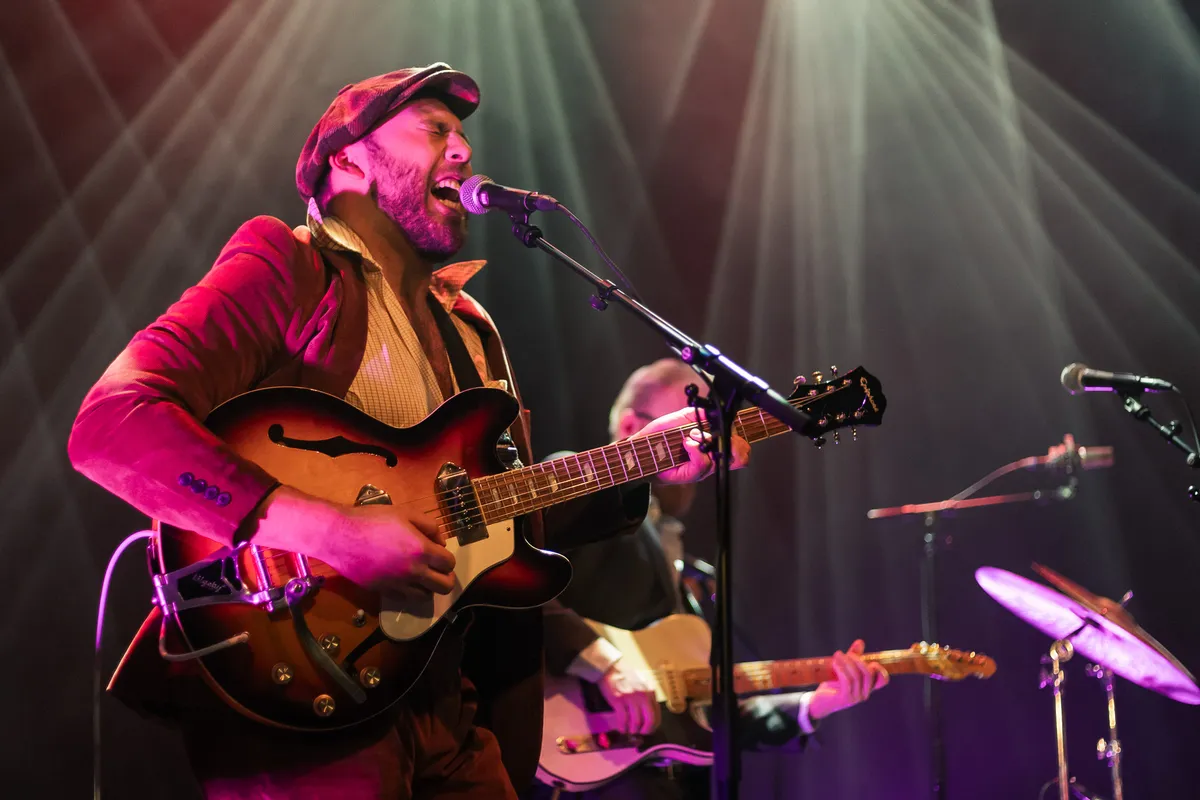 Ondersteund door een zeskoppige band komt Marlon Pichel met een enorme grijns de planken op. Multi-instrumentalist Stan de Kwaadsteniet geeft daarbij zijn plek achter het drumstel (en zijn functie als bandleider) weg aan Pichel. Na een paar voltreffers van nummers als opening is de toon gezet.