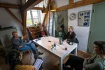 Iets voor drie uur druppelen de mensen de zolder binnen. Ervaren mentoren Michiel Peeters (pop/indie) en Rashida Tauwnaar (hiphop/R&B), omgeven door de jonge deelnemers die er vandaag bij zijn. Gilles van Wees (pop/indie), die de cursus via social media voorbij zag komen, Minka de Regt (house/techno), aangespoord door vrienden om mee te doen, en Lieve Goedhart (hiphop/R&B), wiens moeder het in de eerste instantie naar haar had doorgestuurd. Te midden van de stilte die corona bracht, besloten ze alledrie de sprong te wagen en schreven ze zich in.