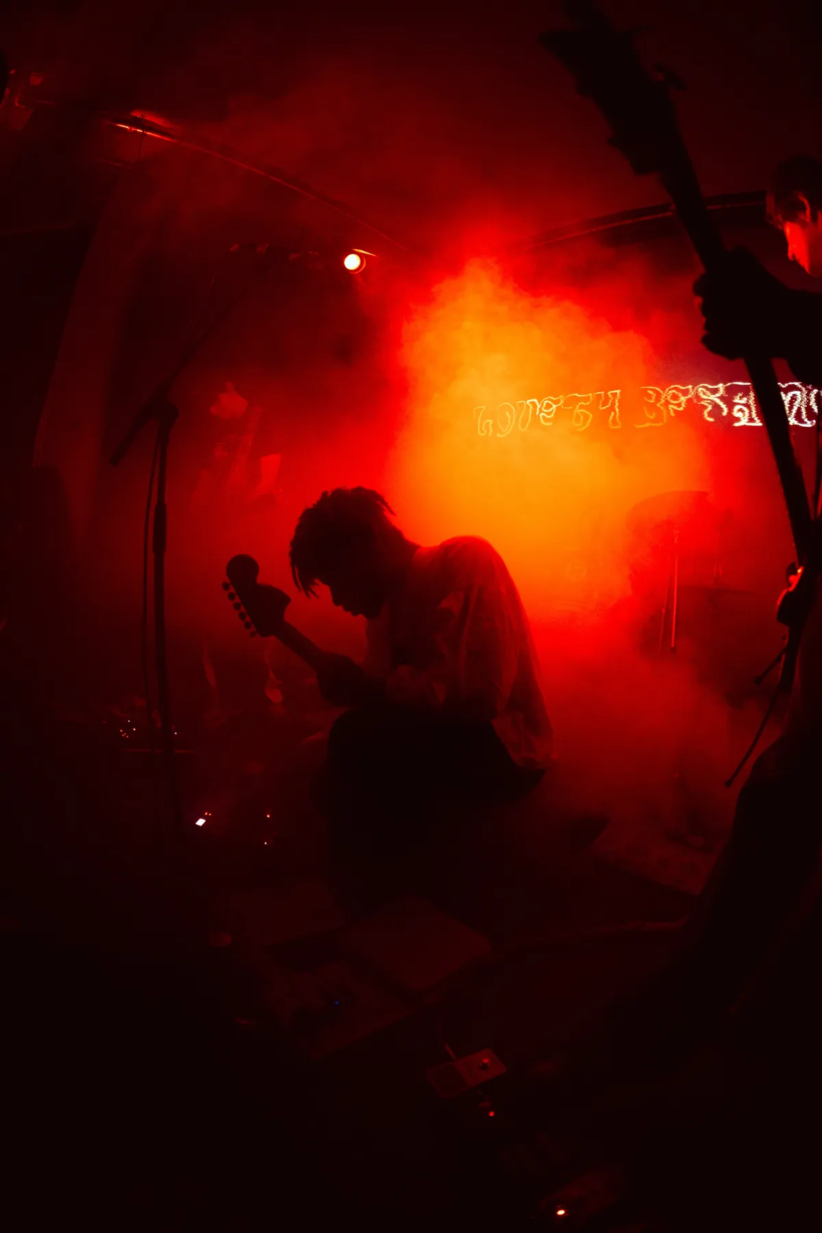 Een vuig potje shoegaze kan natuurlijk niet ontbreken vanavond, en precies dat wordt verzorgd door Loveth Besamoh. Doordat de deur continu openzwiept is het best koud binnen, en hier en daar zien we wat mensen die tot nu toe hun jas aan hebben gehouden. Zodra Loveth en zijn band de eerste met effecten overladen klanken uit de speakers laten blazen, wordt de sfeer intenser en krijgen we het al gauw warm. De eerste moshpits op de Keileweg worden opengetrokken en iedereen duikt er maar wat graag in. Wanneer gitarist Devon ook nog gaat crowdsurfen, kunnen we wel stellen dat dit gebouw goed en wel is ingelijfd.