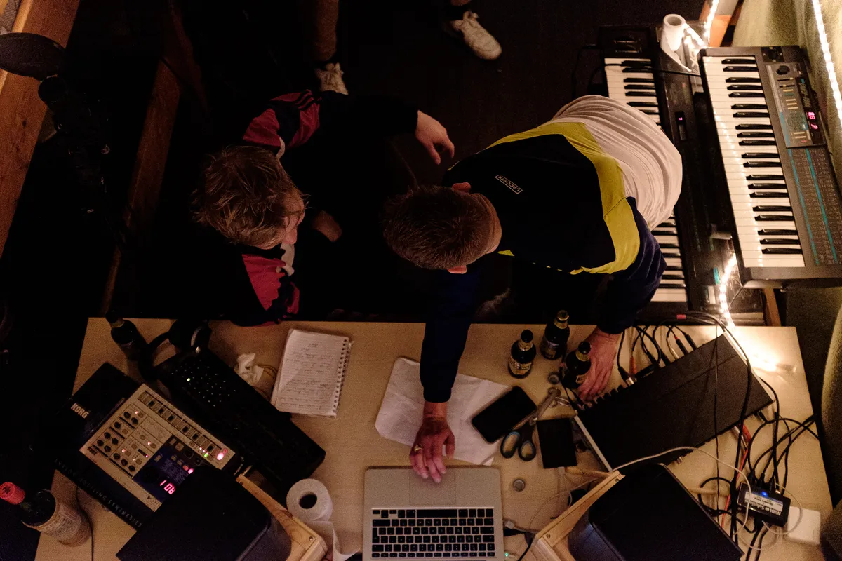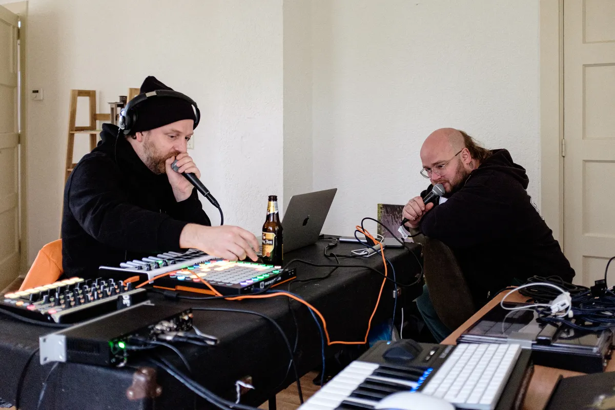 Het is natuurlijk fucking raar, want we zijn aangekomen en hadden er onwijs veel zin in. Het was een uitgelaten stemming. Toen kwamen we aan en werd het een combinatie van een mega productieve avond en keihard feesten. Iedereen was so psyched om hier aan te komen en op zo’n locatie terecht te komen met allemaal toffe muzikanten, dat ze allemaal door het licht zijn gegaan. En ondertussen keihard aan het beuken. Als gevolg daarvan moest iedereen op de tweede dag wat meer bijkomen. Toen kwam het nieuws: het is klaar. We moeten er eigenlijk gewoon uit. Toen zijn wij dus de hele dag gaan bellen en regelen. Tegen de groep zeiden we: “We doen ons best, maar ga er niet vanuit dat het ons lukt. Met pak en beet 48 uur moeten we hier weg zijn. Ga als de malle produceren en zorg dat je er uit haalt wat er in zit. Als je nog met iemand samen wil werken, zorg dan dat je die schets hebt. Thuis kan je het nog altijd afmaken.”