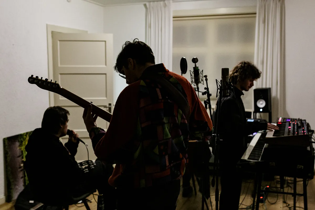 Ja, allemaal mensen gingen hoesten enzo. Toen zijn we gaan nadenken. Wat hebben muzikanten nu nodig? Wat heeft de scene nu nodig? En vooral: wat kan er wel? Daar kwam dit schrijverskamp uit. We zetten ons altijd heel erg op het verbinden in. Verbinden van scenes en disciplines, dat is een beetje ons ding. We organiseren bijvoorbeeld het Eendracht Festival, met twintig locaties door de gehele stad. Allemaal representeren ze een bepaalde scene, zoals bijvoorbeeld een punk locatie en een jazz locatie. Elke locatie wordt dan gehost door een organisatie die echt de scene represent. Dat is dus een beetje wie we zijn. Nu hebben we dus een selectie gemaakt van jonge bandjes in Rotterdam waarvan wij denken: jullie zijn nu de lokale spelers. Jullie verdienen het of jullie zitten er tegenaan om op landelijk niveau te gaan spelen. Wat is er voor nodig, en hoe kunnen we die bands verbinden in de corona tijd? Toen hebben we dus een project bedacht waar we met de bands op schrijverskamp gaan. Zeven studio’s ingericht. Ze kunnen dingen met hun eigen bands doen, maar het is vooral kruisbestuiving.