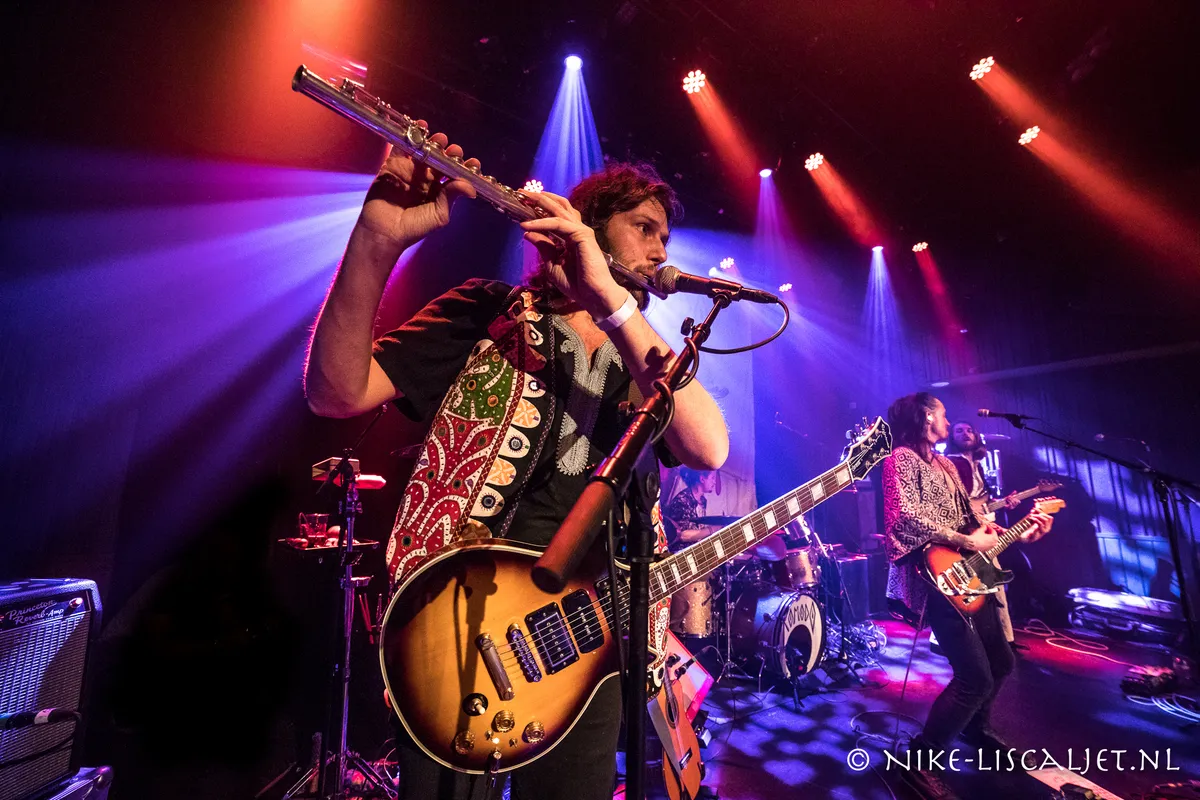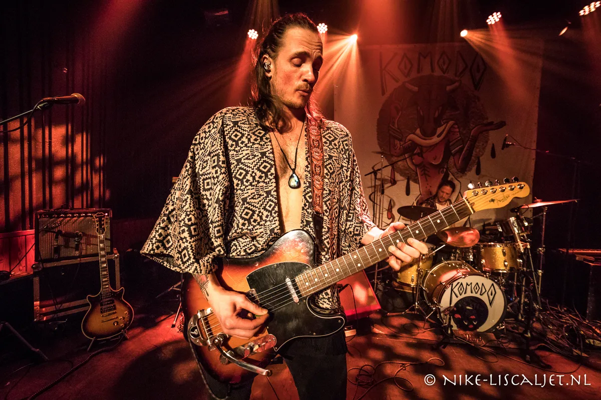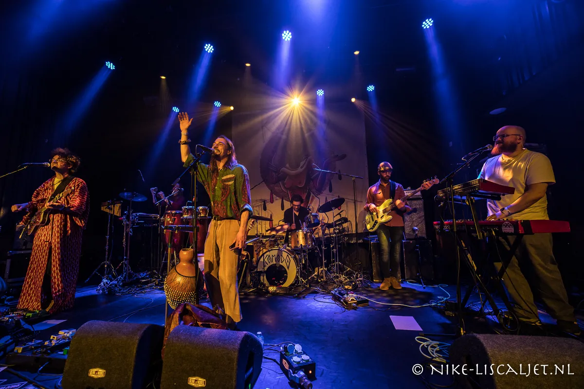 Komodo noemt hun psychedelische rock vintage exotic rock ’n’ roll, jarenzeventigrock met Oosterse invloeden. Oprichter Tommy karakteriseerde zijn band als "Komodo is good times en een exotische danstrip." Wij trokken dus onze dansschoenen aan en haastten ons naar Gebr. de Nobel. I Am Lotus warmde onze spieren op.