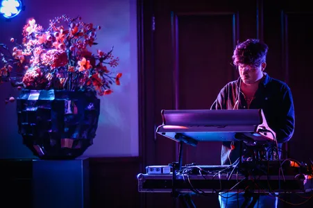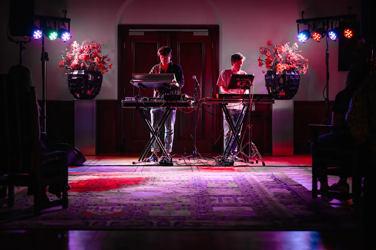 In de trouwzaal van het Stadhuis, over het rode tapijt, langs de statige portretten en door deur met daarboven een foto van koning Willem-Alexander en koningin Máxima, daar staat het trouworkestje te wachten. Dertig statige stoelen staan al klaar, om kwart over tien begint de laatste set vanavond: Amy Root. Sjoerd Huissoon van het dance duo zegt het maar meteen: “Als je het echt niet kan laten… Doe je ding. Wij gaan vol gas.” Zijn muzikale maat Lukas Amer beaamt dat met een korte knik. Nee, natuurlijk is het geen trouworkestje, dit electronica duo neemt je figuurlijk mee naar een late avond op een festival. Een beetje introvert, rijgen ze één lange set dromerige, dansbare beats aaneen, dan weer gas erop, dan weer het gas eraf. En hoewel de aanwezigen die Amy Root als afsluiter van hun PopMonument Breda kozen netjes blijven zitten, is het applaus er na afloop van de sessie niet minder om.