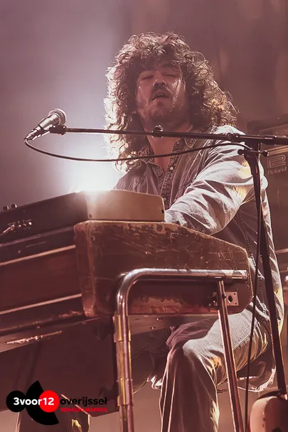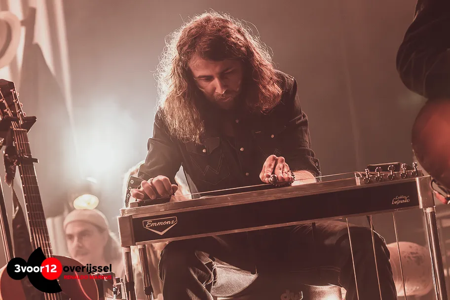 Die sfeer wordt zaterdag naar een gezellig druk Hedon gehaald. Het podium van de grote zaal is voor de gelegenheid aangekleed met stoffen lampenkappen, vloertapijten en een huiselijke fauteuil. Die blijkt niet alleen decoratief te zijn, want met veertien (!) mensen op het podium heeft niet iedereen bij elk nummer wat te doen. Henk Wesselink, met name bekend van rocktrio Money & The Man, opent als zanger de avond met het knusse Camping Song en Early Rain. Het moet geen simpele taak zijn geweest voor de technici om het geluid in de zaal opperbest te krijgen. Er staat een hoop vintage materiaal op het podium en er wordt heel wat afgewisseld met instrumenten. Toch hebben ze het voor elkaar gekregen om het warme geluid en de dynamiek helemaal tot hun recht te laten komen. De akoestische gitaren verdrinken slechts zelden in de mix en ook het kleurrijke orgel- en pianospel van Henk Hulzebosch (Boogie Monster, The Grand East) verliest nergens zijn plek. Bovendien zijn er gedurende de hele voorstelling momenten waarin Jim Zwinselman (Bökkers, Boogie Monster) de show steelt met zijn virtuositeit en geperfectioneerde toon op gitaar en pedal-steel. Wanneer Sam Pols (o.a. Magnetic Spacemen) zijn plek bij de microfoon inneemt voor Shakedown Cruise komt het echt los. De chaotische energie die hij met Spacemen uitdraagt weet hij ook hier te etaleren en we wanen ons even bij een uit de hand lopende Grateful Dead show. Sowieso staat alles vanavond net een tandje harder, een tikkeltje rockender, dan wat we op de plaat horen.