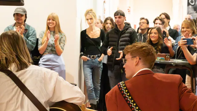 Aldus Sem Witt van elektropopgroep Daise, die vandaag een gevoelig solo-optreden met piano verzorgt. Die vader waar hij het over heeft is overigens Johan Witt, één van de oprichters van muziekschool Ready To Play, die ook in het gebouw zit.