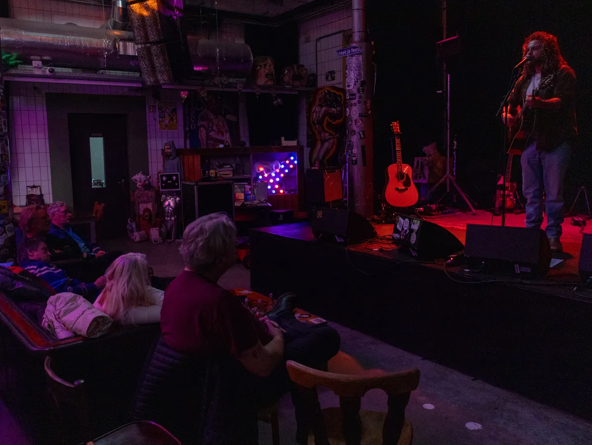 Sam Saxton steekt behoorlijk wat energie in de zondagmiddag die zij mag organiseren in Slachthuis Haarlem. Inmiddels zijn er ook vaste gasten en bezoekers die naar Slachthuis Haarlem komen. Als hoofdacts zijn onder meer P.J.M. Bond, YORI en Blackbird geweest en aan talenten ook geen gebrek met onder meer Coos, Rose Marin, Jacob Drescher en Iris Jean die ervoor zorgen dat iedereen aandachtig zitten te luisteren. Deze zondag met Tjels en Boaz vormen daar geen uitzondering op.