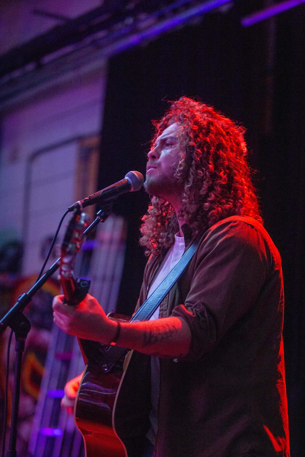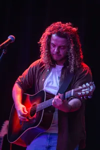 Als laatste mag Boaz als hoofdact deze editie van Saxton Sunday Sounds afsluiten. Hoewel Boaz nog maar drieëntwintig jaar is, lijkt het alsof hij een heel leven achter de rug heeft. Dat is eigenlijk ook zo. Bij de introductie vraagt Sam aan Boaz of hij een stukje van de Engelstalige versie van Engelbewaarder wil spelen. Hij voldoet aan het verzoek, want met dit, zijn er behoorlijk wat deuren opengegaan, zoals een optreden in Gelredome. Na het verzoek vertelt Boaz waar hij mee bezig is. ,,Ik ben veel aan het schrijven”, zegt hij. Het is de vrije geest die Boaz heeft en in een setting als deze zich volkomen op zijn gemak voelt. Kritisch op het schrijfproces is hij ook. ,,Het moet wel een rode draad hebben”, zegt hij.