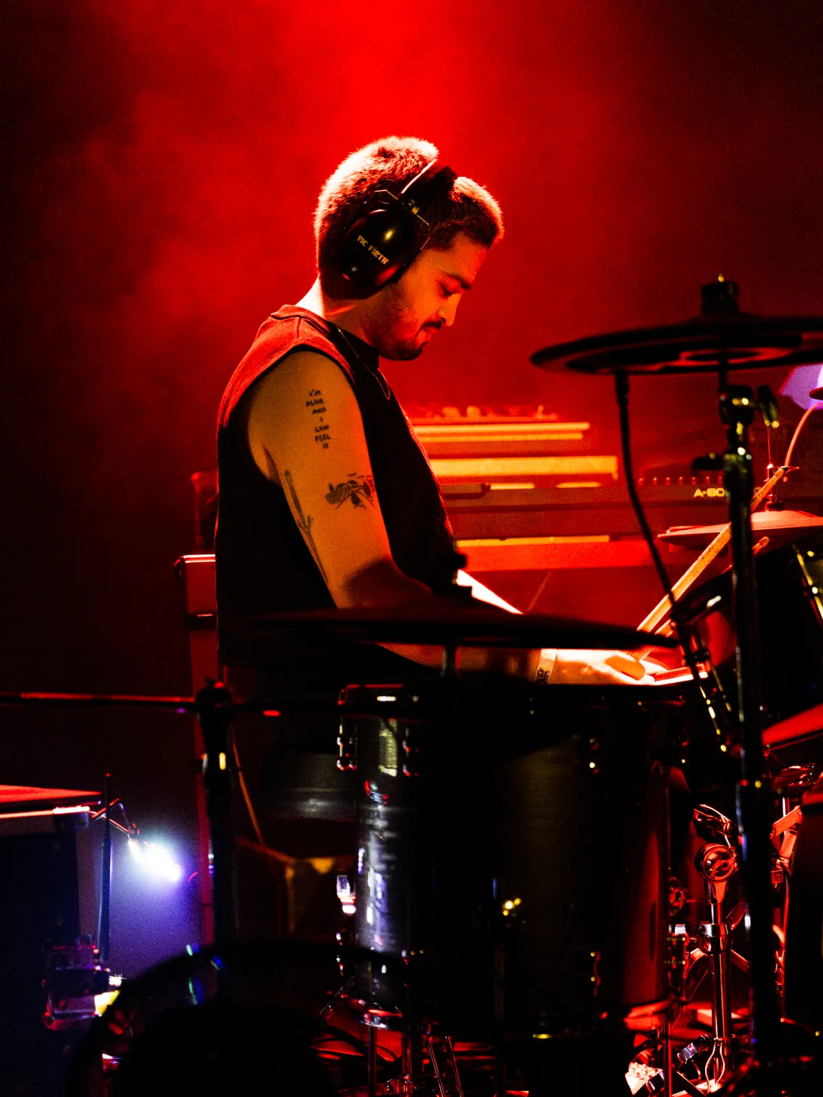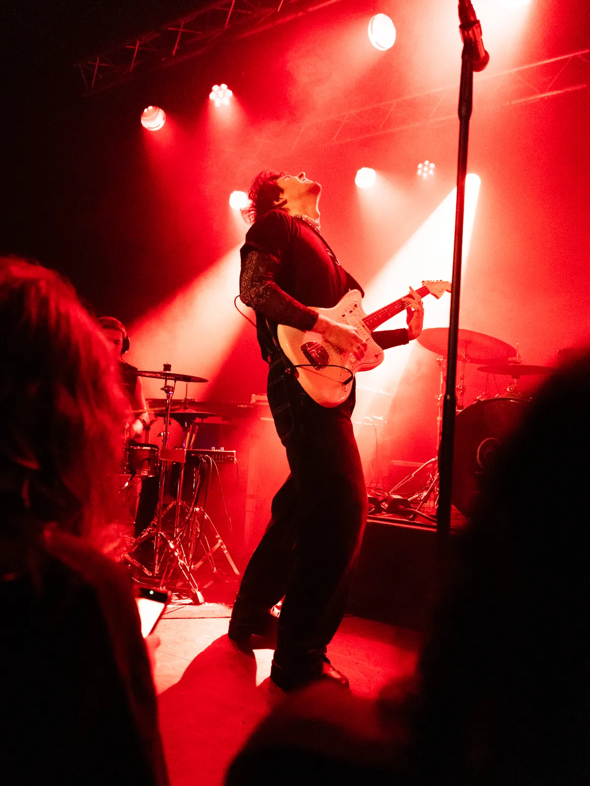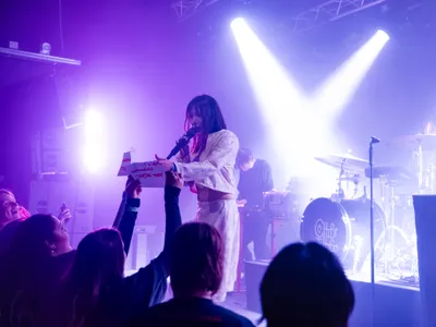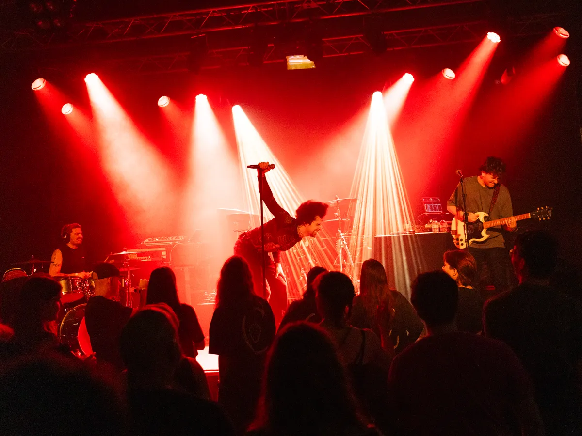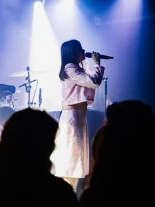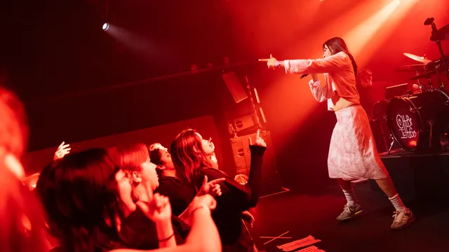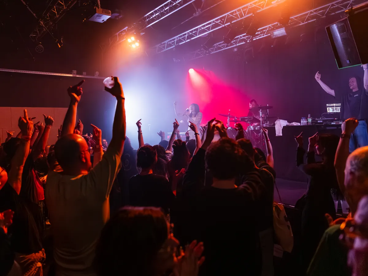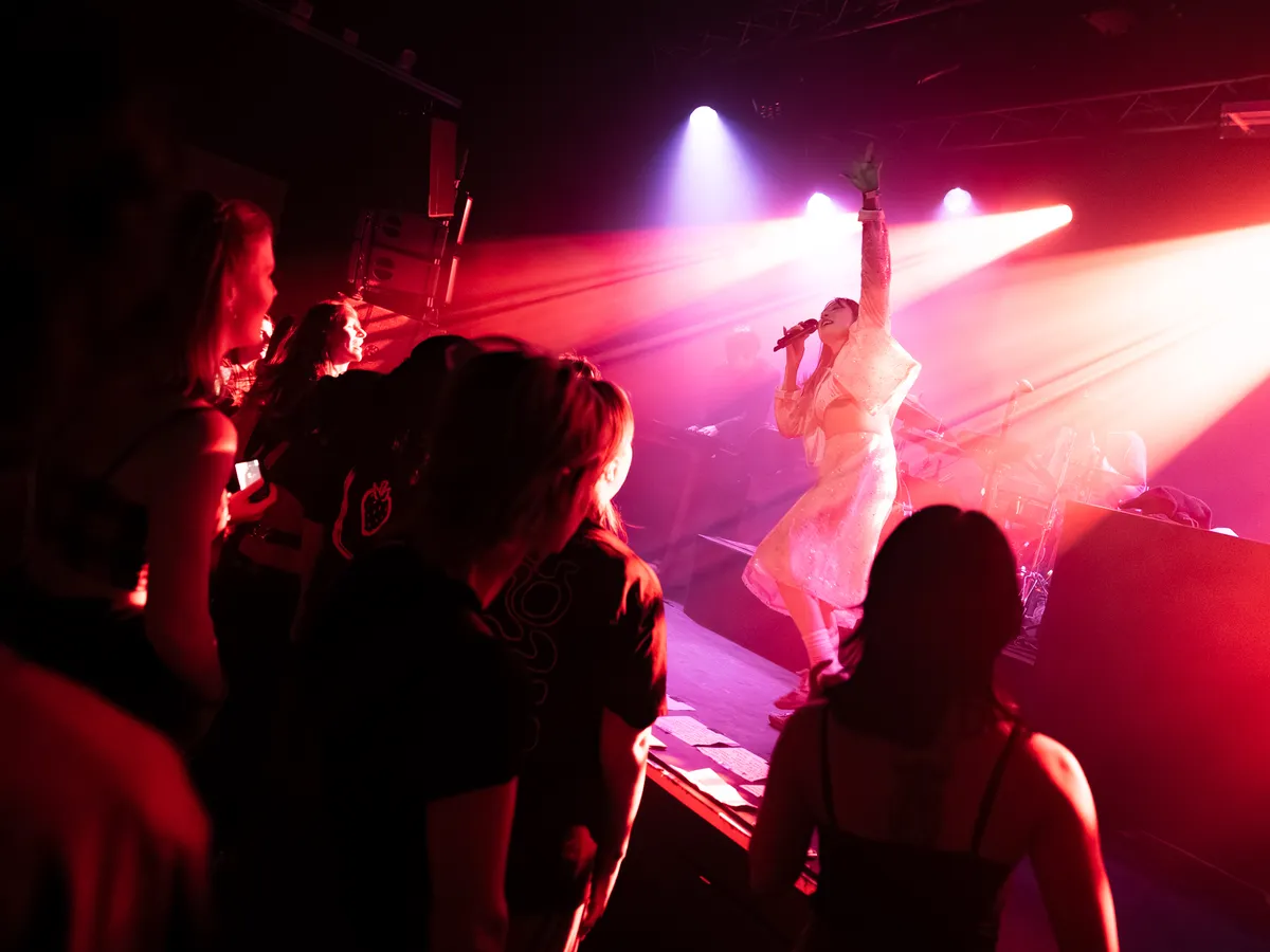 Stipt om half tien is het zover. De band van Chibi Ichigo heeft het podium al betreden. Er klinken harde, dreunende beats, aangevuld met een roffelende snaredrum. De Belgische zangeres maakt ironisch genoeg haar intrede met het nummer ‘Zachter’ van haar nieuwe EP Hardt, die begin dit jaar is uitgekomen. Toen ze in 2024 in het voorprogramma van Froukje stond, bewoog Chibi Ichigo meer richting hiphop en electropop. Nu kiest ze duidelijk voor een nieuwe technosound: elektronischer en dansbaarder. Toch lijkt de zangeres in het begin nog even op gang te moeten komen. Oude en nieuwe nummers vullen elkaar goed aan, al klinken de oudere tracks net wat zelfverzekerder. Hier oogt ze meer moeiteloos over het podium heen te stuiteren. Zo nu en dan is het tussen de nummers door tijd voor haar welbekende positieve peptalks. Zo drukt ze het publiek op het hart: “Niemand loopt achter, dit is exact waar we moeten zijn.”