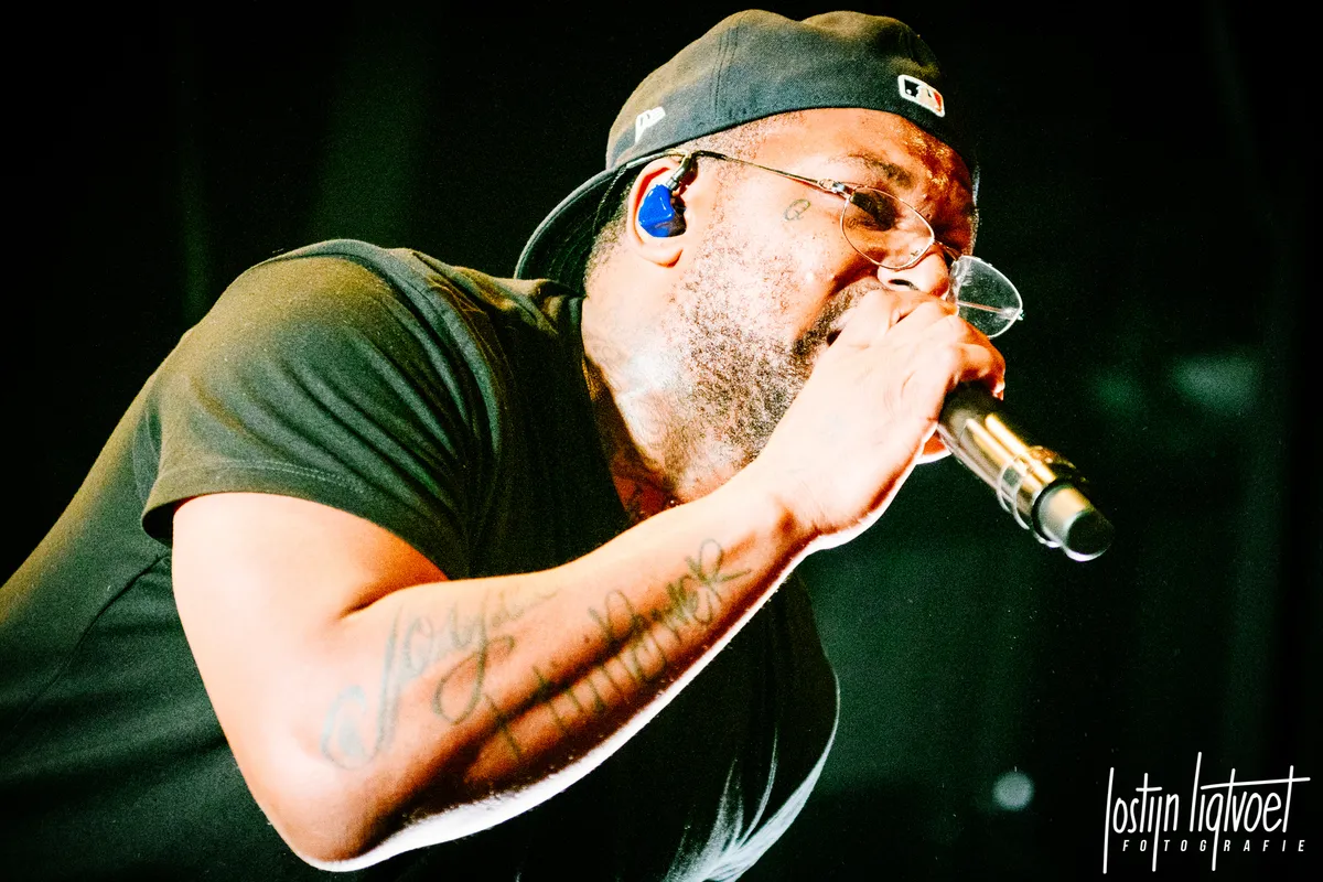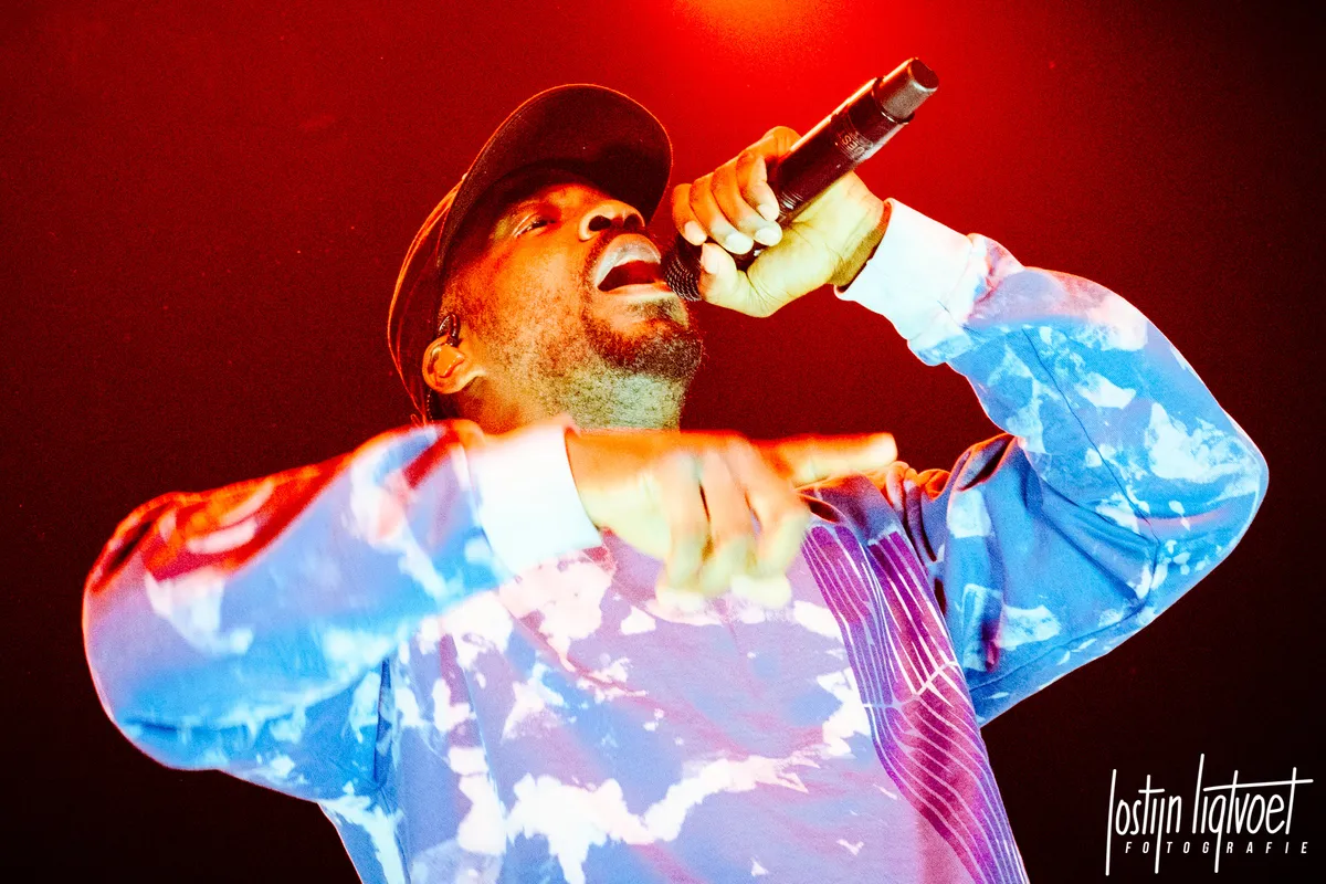 De laatste keer dat Q een tour langs de Nederlandse poppodia deed, was in 2016, toen zijn album Blank Face net uit was. In een volle Tivoli Vredenburg bracht hij zijn destijds nieuwe album ten gehore met een memorabel contrast van een optreden in witte sokken tegenover de zwarte setting van het toneel. Hoe solide de show toen ook was, het haalt qua uitbundigheid bij lange na niet wat er hier in Tilburg gebeurt. Over en weer enthousiasmeren Q en het publiek elkaar en trakteert de rapper het publiek gaandeweg op 'oudere hits' en toont aan dat nieuwe nummers als Chopstix zich prima staande weten te houden tussen bijvoorbeeld Studio en klassieker Work. Nieuwe single Numb Numb Juice mag ook niet ontbreken en wordt halverwege omgetoverd in een a capella versie om vervolgens aan het eind van de set te herintroduceren.