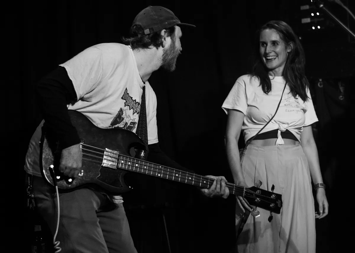 Elk nummer lijkt op te bouwen naar een vreugdevolle climax. Het is muziek die doet denken aan de underground indie-scene uit Amerika, met ironische teksten over alledaagse dingen en opzwepende solo’s van de slidegitaar. Als je Sean en zijn band misschien aantreft in een willekeurige bar, blijf je geheid even hangen. ,,Wie niet danst op dit nummer, moet naar de dokter,” grapt hij op een gegeven moment. Het zaaltje – dat redelijk gevuld is – bewijst zich kerngezond. Vooraan staat Lewin, die zo nu en dan het podium op springt om mee te zingen, en anders staat ze het publiek en Sean te filmen. De twee hebben redelijk verschillende muziekstijlen, maar lijken elkaar goed aan te vullen. Zo gaat het wel vaker in de liefde.
