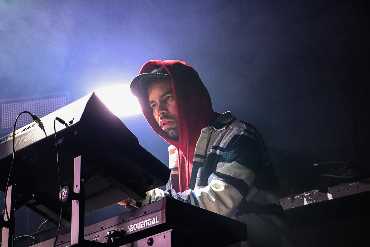 De driekoppige band bestaat uit Jheynner Argote die de drumpads bedient, achter de échte drums zit Nicky Hustinx en op toetsen zien we Nils Davidse. Het drietal is ook de band van Wende, en dat is geen vreemde keuze, want een van de vele hoogtepunten van de avond is de nieuwste single ‘Voor Alles Bang’ met daarin een sample van Wende. Een melancholieke housebanger die in zeer korte tijd is uitgegroeid tot publieksfavoriet, ook hier in 013.