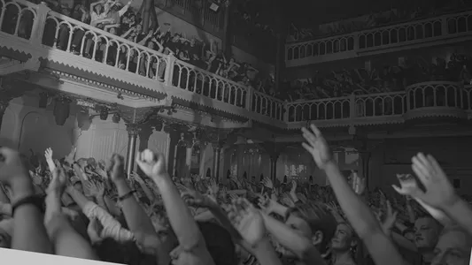 De zaal vult zich met Amsterdamse jeugd en studenten,