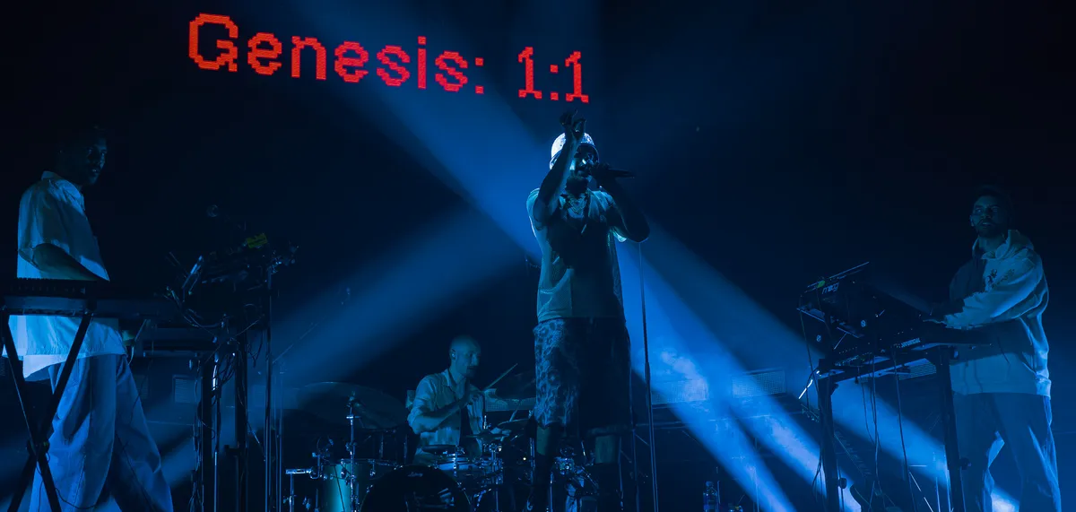 Om een mens te zijn staat er in de lichtbalk van het podium