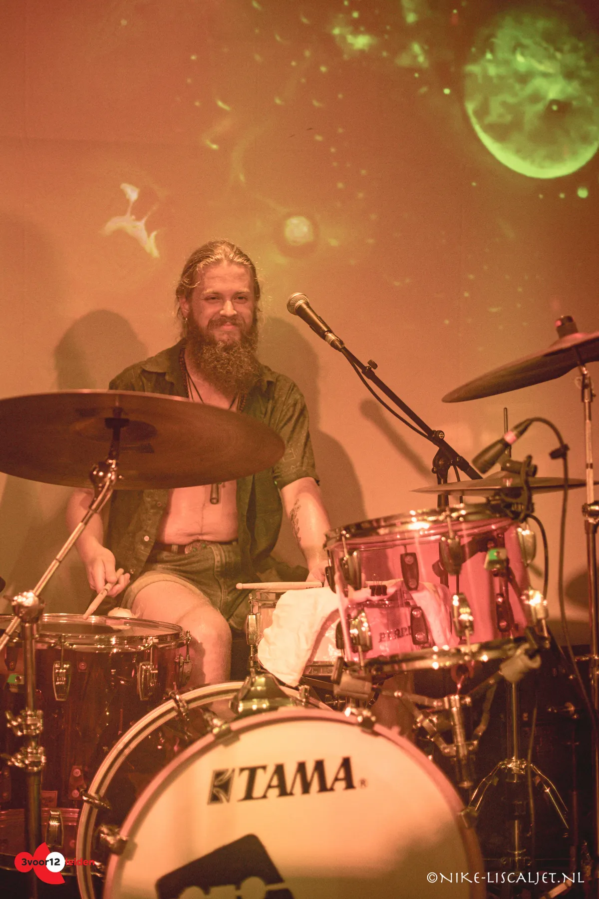 Na het optreden van Kirsten de Wolf moet iedereen de zaal uit, zodat de volgende act zich kan voorbereiden. Bij terugkomst van het publiek zijn er verse wierookstokjes aangestoken voor de psychedelische rockers van Heath uit Den Haag. Het openingsnummer ‘Isaak’s Marble’ brengt het optreden meteen aan het rollen. Het samenspel klinkt strak en solide zoals we van deze mannen gewend zijn, doorspekt met vele gitaar- en mondharmonica-improvisaties. Moeiteloos worden maatsoorten afgewisseld: drie-, vier- of vijfkwartsmaten, variërend van dromerige vibes tot uptempo dansnummers, het klinkt allemaal even soepel. Dat komt deels op het conto van drummer Dars Hellemond: met beestachtige snelheid en kracht bespeelt hij zijn drumkit, uitstekend lockend met de soepele grooves van bassist Steve Lolicato. De vijfkoppige band past met al hun versterkers, pedalboards en instrumenten maar net op het – blijkt dan ineens – relatief kleine podium van de Resistor. En hoewel de band een uitstekend optreden neerzet, lijkt de beperkte bewegingsvrijheid toch enige invloed te hebben op de energie van hun performance.