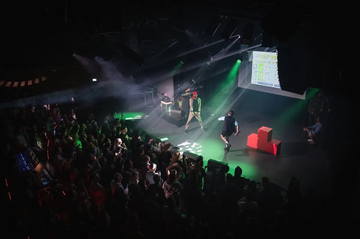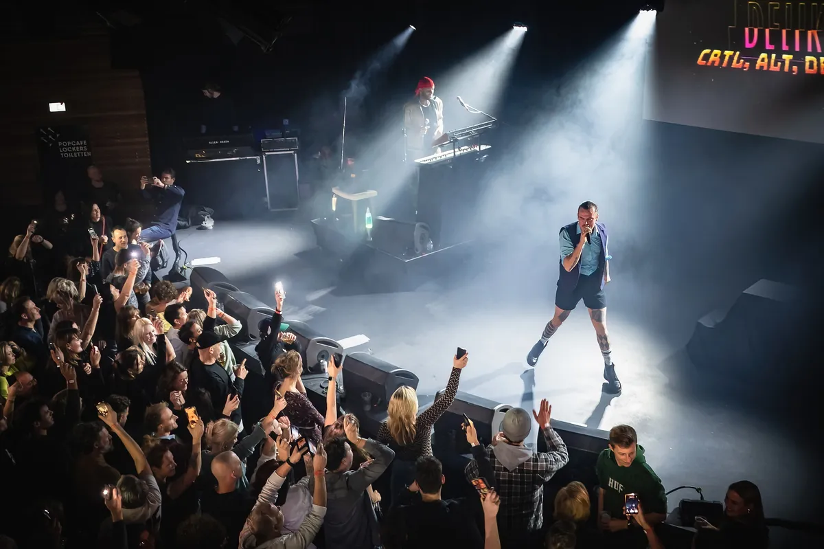 Wie dacht dat het afscheid van De Likt in de regen in het Valkenberg Park bij Breda Barst in september was, had het verkeerd. De Rotterdamse rapgroep kondigde bij het verschijnen van de laatste plaat ‘Ctrl-Alt-Delikt’ meteen ook het einde van de groep aan. Het slotconcert in de Paradiso op 28 januari moet uitverkocht zijn en frontman Jordi Dijkshoorn laat dat aan het einde van de set (van een uur) nog even duidelijk weten. De afscheidstour wordt grondig aangepakt, een soort hiphop-in-de-club-theatershow: geprojecteerde videogame beelden over de nummers begeleiden de tracks, zo is bijvoorbeeld ‘Stadsduif’ een parodie op de klassieke Nintendo game ‘Duckhunt’. Of denk aan een 8 bit sample van Rick Astley’s ‘Never Gonna Give You Up’ voordat Dijkshoorn bij zijn broer in zijn nek kruipt voor een rondje in de zaal bij ‘Bloed Aan De Muur’ of crowdsurfen bij ‘The Boys Are Back In Town’. Met een knipoog naar 2018 toen De Likt voor het laatst in Mezz was. Ja een echt hiphop show met de zaklampjes op de telefoon in de lucht en een onvermijdelijke sit down bij ‘Ja Dat Bedoel Ik’. Het publiek smult en danst vrolijk mee op de harde club beats van De Likt. Daarna verlengen de vaste De Likt dj’s Jipson & Yones het clubgevoel in Mezz.