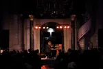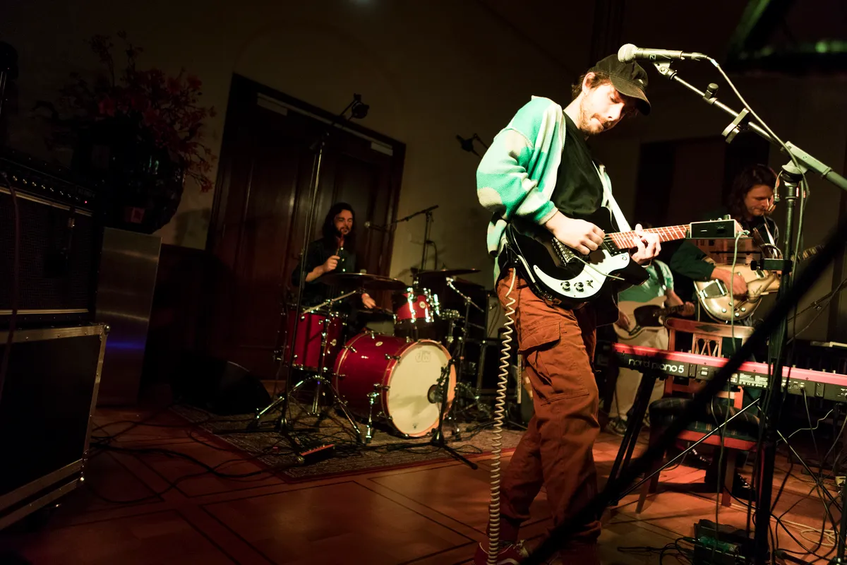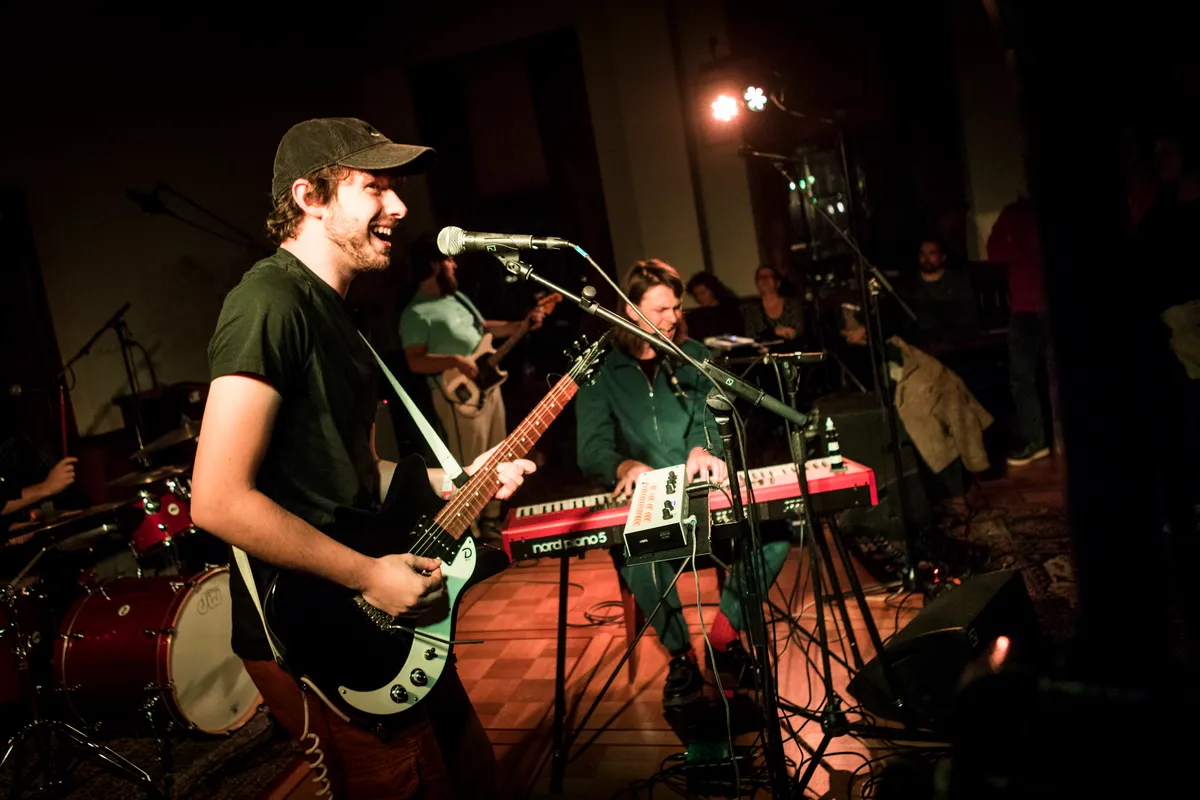 De Bredase/Zeeuwse band De Toegift speelde eerder deze week nog het voorprogramma van Alt-J in AFAS Live en staat nu in de Trouwzaal van het Stadhuis op de Grote Markt. De band begon met voertaal Engels, als Little Symphonies, maar geboren Zeeuw en frontman Maxim Ventulé koos, geïnspireerd door Broeder Dieleman, toch voor het Nederlands. Die keuze bracht direct nieuwe nummers en een debuutalbum komt eraan in januari. De Toegift werd door 3voor12 al benoemd tot één van de talenten van de afgelopen Popronde en trad ook al op bij 3voor12 Radio. Dit is dan ook een thuiswedstrijd en de Trouwzaal staat vol. De band heeft veel dynamiek en wisselingen in geluid en instrumenten. Het merendeel speelt Ventulé op de toetsen, zoals bijvoorbeeld het mooie ‘Nollestrand’, maar geregeld schuift gitarist Tom Gudde aan achter de toetsen en speelt Ventulé gitaar, zoals bij de gisteren verschenen single ‘Licht Als Stof’. In het laatste nummer wissel bassist Jorie Slagmolen en Tom dan weer van instrument. Het Nederlands past de band goed en het optreden is heel sterk. Dat belooft veel voor het aanstaande album ‘De Toegift’.
