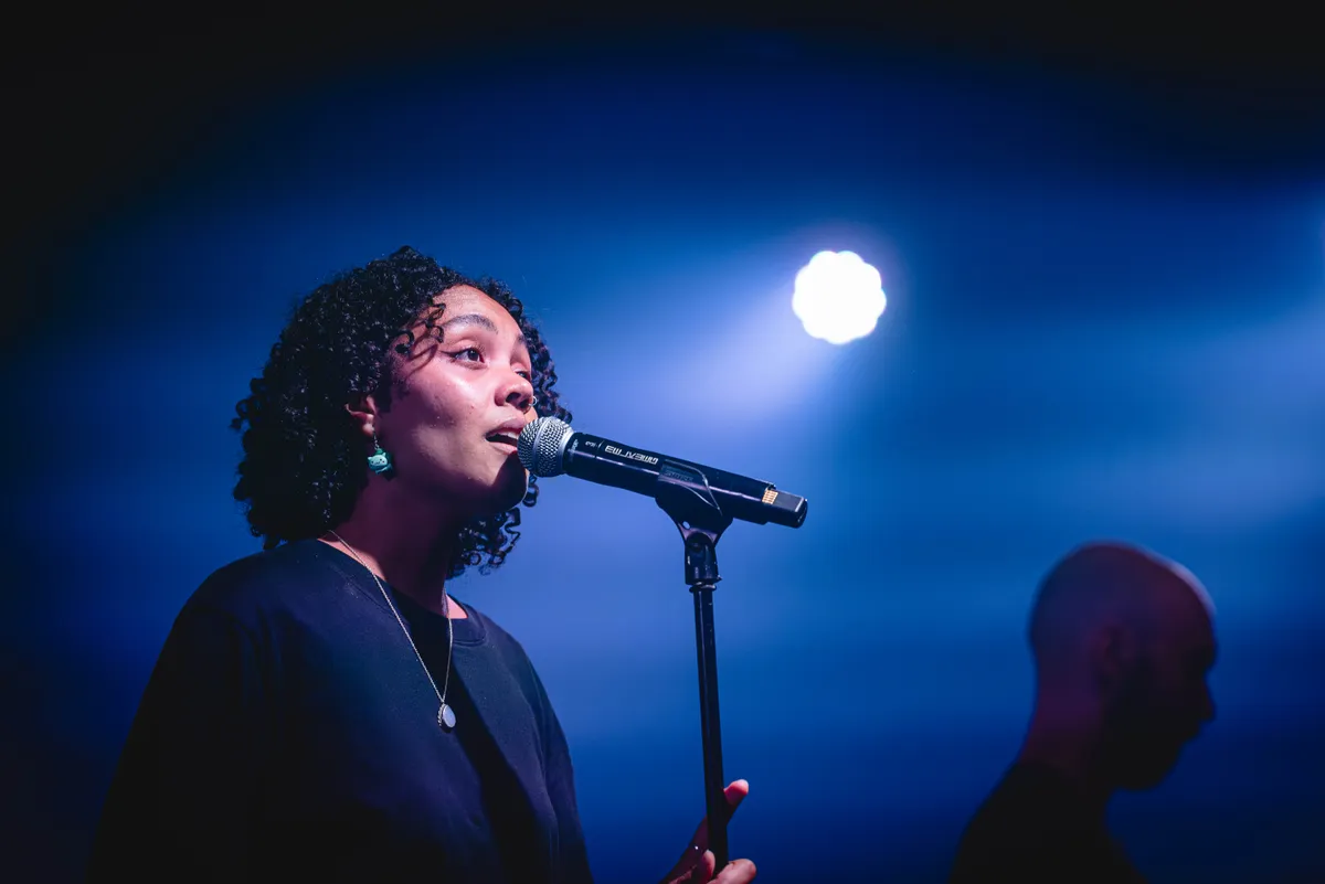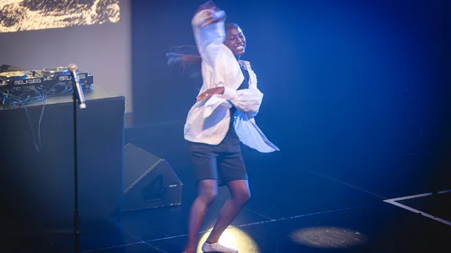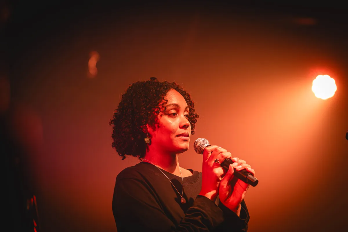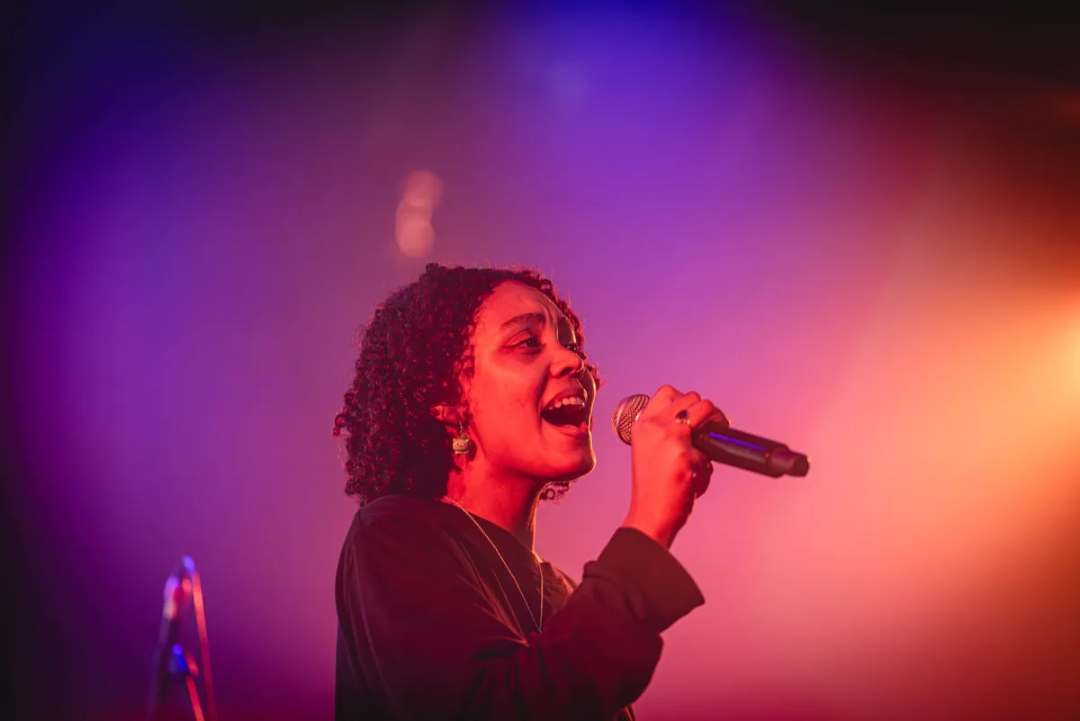De eerste artiest die het spits mag afbijten is Dayo. Op d’r sokken komt ze het podium opgelopen en sust ze het geroezemoes in het publiek: “Kunnen we?” Ze maakt alternatieve popmuziek en begint rustig, maar nadat ze eenmaal op gang is gekomen komt ze helemaal los en wordt haar stem steeds harder. Ze zingt over haar leven en moeilijkheden met haar mentale gezondheid.