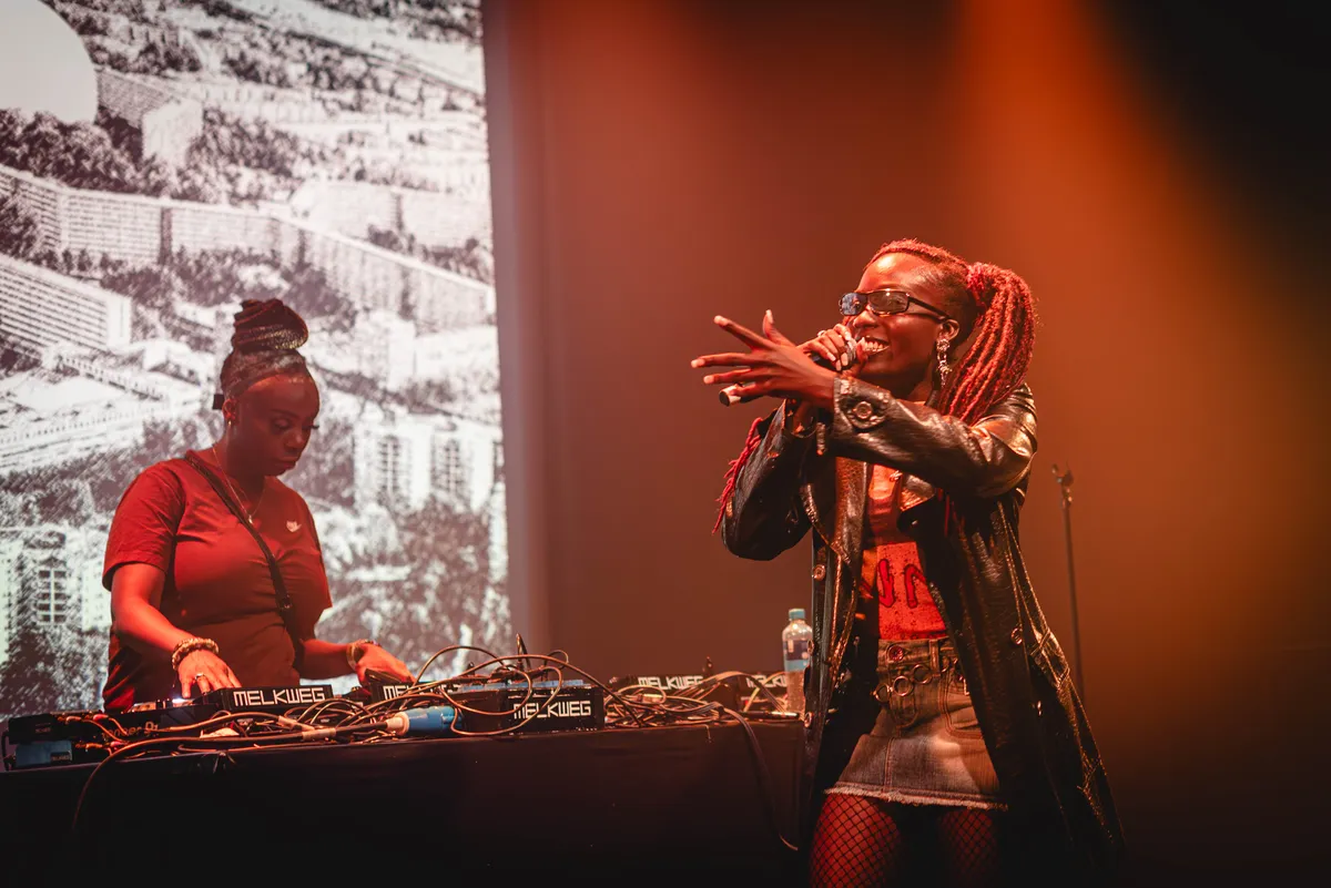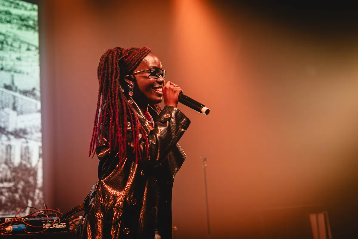 Marassa is de volgende. Ze betovert het publiek met haar uitstraling. Ze is een prachtige verschijning, gekleed in een spijkerrok, oranje en rode top, zwarte knielaarzen, zwarte trenchcoat en ze heeft een zonnebril op. Ze is niet te missen, het lijkt alsof ze geboren is om artiest te worden. Naast dat ze er fantastisch uitziet, is het vooral haar zelfverzekerdheid en energie die aansteekt. Ze begint met een spoken word, over schijn en oude trauma’s. Daarna stapt ze over op rap: “Liefde is pijn dus ik indulge graag, het is m’n lichaam die die trauma opslaat”. Ze voegt Sranantongo en Nederlands samen en rapt in beide talen. Het publiek, dat uit een groot deel bestaat uit Surinamers, is niet meer te houden en gaat los. Ze dansen met haar mee en juichen haar aan. Eenmaal aangekomen bij het laatste nummer, werkt de beat niet mee. Dat maakt niet uit, ze doet het gewoon a capella - en goed ook. Marassa is een naam waar de hiphopscene zeker nog meer van gaat horen.