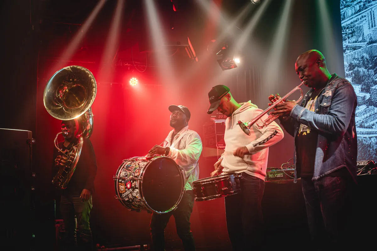 In de veronderstelling dat de avond aan zijn einde is, worden we nog verrast met brassband Anderhalf Meter. Nog een laatste keer wordt er gefeest en gedanst en wordt er uiteindelijk toch een punt achter de avond gezet. Het is een uniek programma geweest bomvol met groot talent, gevoel van eenheid en vooral liefde voor de Bijlmer en de culturen van Zuidoost.