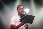 Ray Fuego in de rol van dichter; vanavond op het podium met notitieboekje