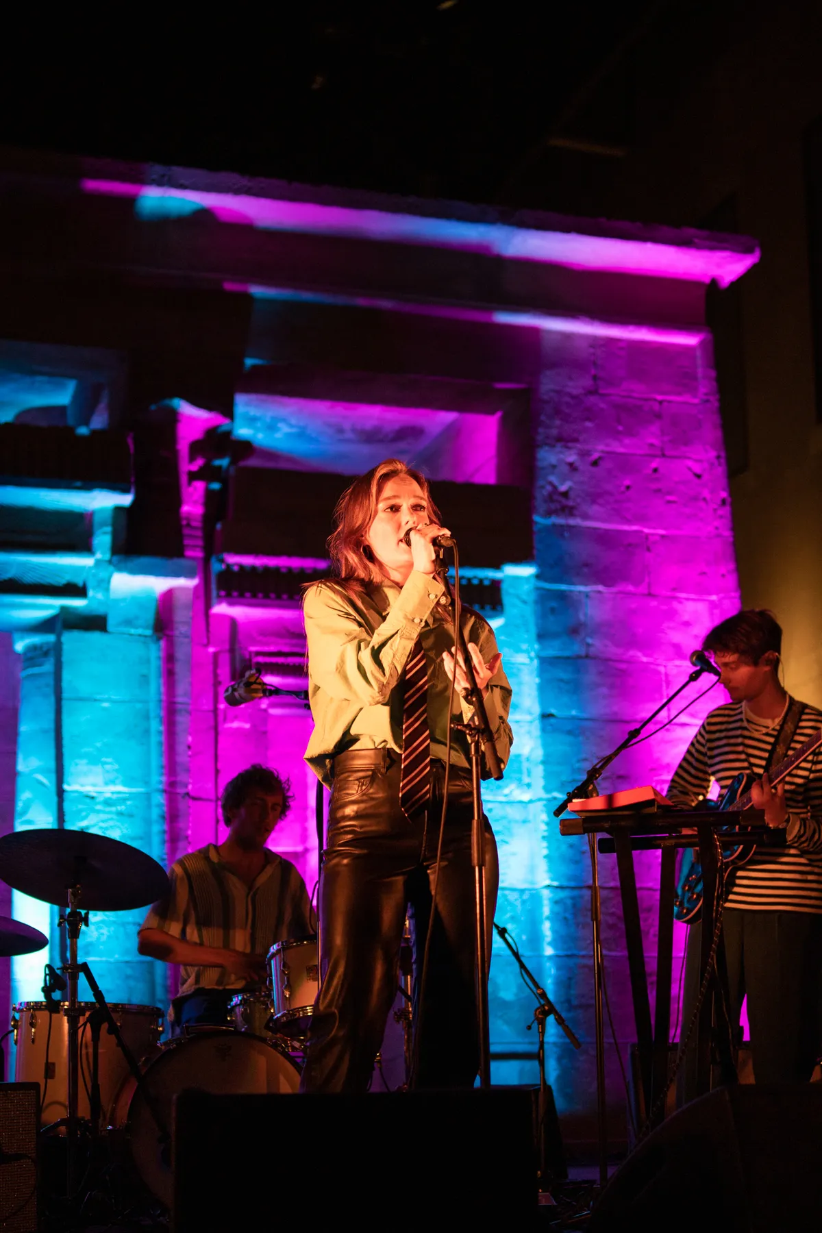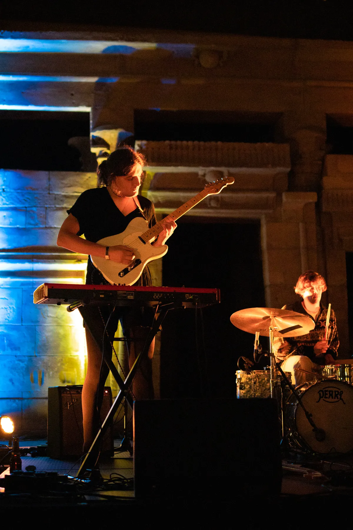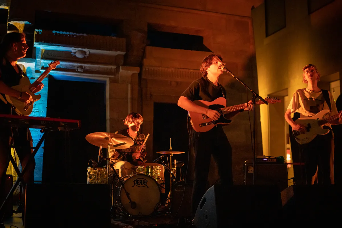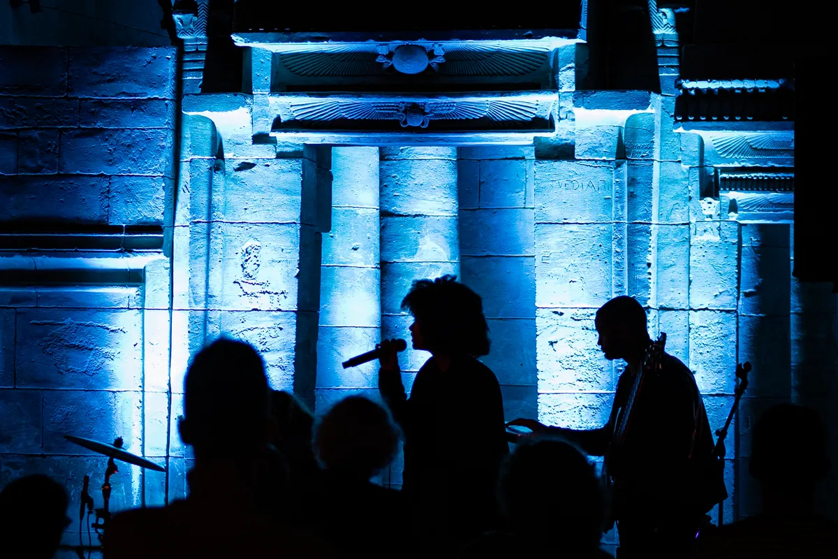 Om acht uur heeft leadzanger Jasper Boogaard van Nagasaki Swim nog geen zangklank uit zijn keelgat geperst. Ondertussen is de Tempel van Taffeh, een zandstenen bouwwerk van 4,5 bij 8 meter, al lichtpaars van de neonlampen. Het publiek, van alle leeftijden, neemt slokjes van hun bier of fris. Aan hun zijde staan hier en daar een paar Romeinen in vol ornaat. Om kwart over acht springt presentatrice en NPO Radio 2-dj Emmely de Wilt het podium op. Haar enthousiaste opmerking “letterlijk een poptempel” schept verwachtingen en zet de toon. Nagasaki Swim blijft de vrolijkheid hoog houden met hun eerste nummer. Hun uptempo sound van country en folk zal de rest van hun show zo blijven, en hoewel politiek geëngageerd – het derde nummer is voor Bernie Sanders – is het poppy en fun. Het publiek krijgt er steeds meer zin in. Na iedere track is er meer applaus en beweging in de zaal. Een gezellige, positieve show, hoewel wat meer variatie in de muziek het nóg beter had kunnen maken.
