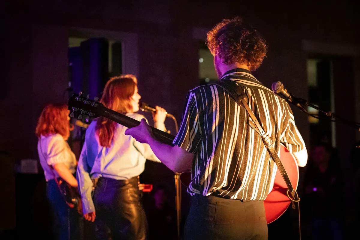 “Hebben jullie er een beetje zin in?”, roept leadzangeres Rianne Walther van The Indien, de laatste band van History in Concert, richting het publiek. Er stijgt een bescheiden gejuich op van de tientallen aanwezigen, maar niets doet afbreuk aan de energie van deze band. Hun inzet werpt zijn vruchten af en al na een paar soulvolle nummers zijn de eerste (shuffle)dansmoves te zien. Funky, sixties, psychedelisch, het publiek geniet. De glasheldere, rake stem van Walther als lead geeft de band deze avond nog een swingende draai. Tegen een prijs, zo vertelt de leadzangeres haar toehoorders: meer dan eens leidde liefdesverdriet tot een van haar opzwepende tracks. Gelukkig niet allemaal, ten minste één kwam tot stand op tour in Denemarken, terwijl de band genoot van de lokale haring (“mijn grootste bezigheid naast muziek is eten”, aldus Walther). Verder is ze wat zenuwachtig (“kom wat verder naar voren, anders is het zo eng”) en vindt ze het museum “de gekste plek waar ze ooit heeft gespeeld”. Tijdens haar show en die van haar bandleden is er echter geen onderdeel dat niet op zijn plaats past. Het hele optreden blijft de enthousiaste sfeer hangen en gedurende het laatste nummer van de avond – ingevuld door The Indien’s nieuwste nummer van The Indien, 'Born again' – laat de leadzangeres echt zien wat ze kan met een flinke uithaal. Het publiek joelt. Vanavond is tussen alle historische zwaargewichten op de valreep nog een beetje geschiedenis geschreven, met muziek in de hoofdrol.
