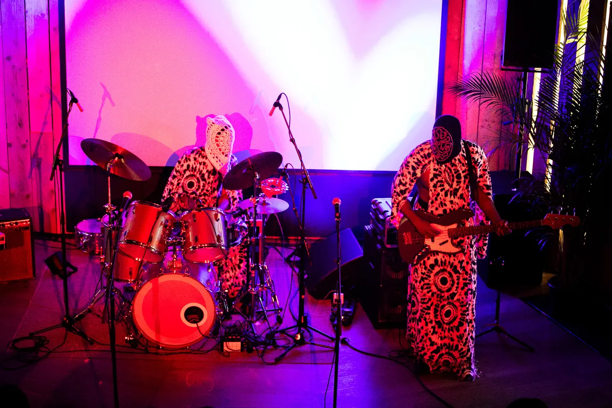 Het duo Illnoledge sluit het live programma af. De twee broers, die ooit hun eerste beat maakten om een muziekje op te kunnen zetten tijdens een potje straatbasketbal, beginnen hun show met een in het oog springende zwart-wit outfit. Na een muzikale opwarmer waarin ze flink losgaan op de bas en drums, gaan de maskers af. De mannen laten hun soulvolle stemmen los op ‘The Champion’, een track met een beat die aan MF DOOM doet denken. Zowel de sound, als hun teksten hebben een mysterieus en surreëel randje. Zo zingen ze: “Beam me up in the mothership. Take me high on a cosmic trip.” De heerlijke ‘70s falsetto en harmonieën doen denken aan Silk Sonic. De energie blijft hoog, want de zang wordt meermaals afgewisseld met live percussie en funky bas lijnen. De cosmic trip is geslaagd.