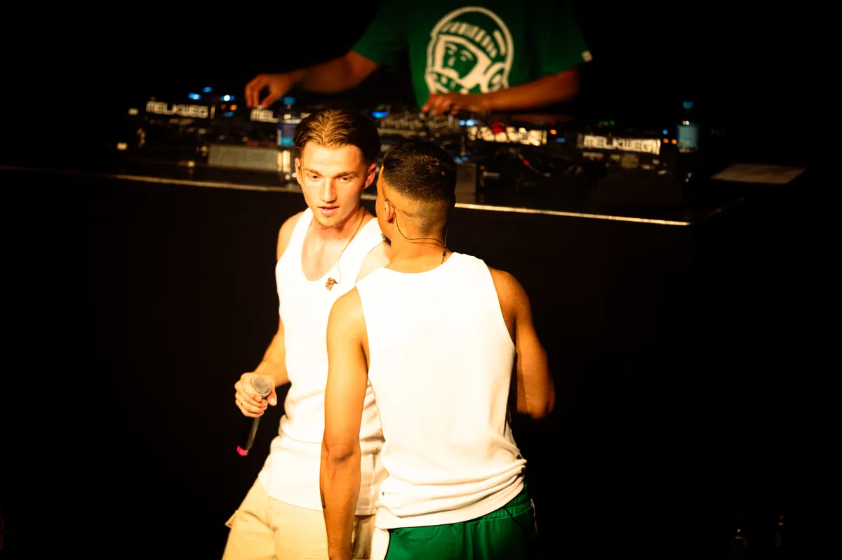 De verrassingen zijn nog niet klaar. Big2 manoeuvreert zich op het podium en niet veel later volgt Josylvio. Siggy en D1ns zijn op zichzelf al een goede act, maar alle gastoptredens maken de show af. Het is bijzonder dat ze nu al met zulke grote namen op het podium mogen staan, en maakt hun eerste eigen show een groot succes. Zelf lijken ze ook enorm trots en vol geluk, ze komen steeds losser en lijken ze zich meer op hun gemak te voelen. Het wordt ook steeds broeieriger, Sigmar doet zijn hoodie uit en Daan volgt kort daarna. ,,Ik moet nog even chest kweken”, grapt Daan.