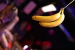 Het is de laatste Simplon 1UP voor de zomerstop, en dat is te voelen: het is broeierig warm, met zweetdruppels op het voorhoofd verzamelen de mensen zich bij de bar die volledig in het teken staat van… bananen! Het jaarlijkse fruitthema van de laatste Simplon UP zorgt dit jaar voor een koortsdroom waarin trossen bananen aan het plafond hangen, bananensnoepjes voor het oprapen staan op de bar, en piña colada’s met bananensmaak worden uitgedeeld door een dansende banaan waarin de kenners Rob Schoenmakers van o.a. TAXITAXI in kunnen herkennen.