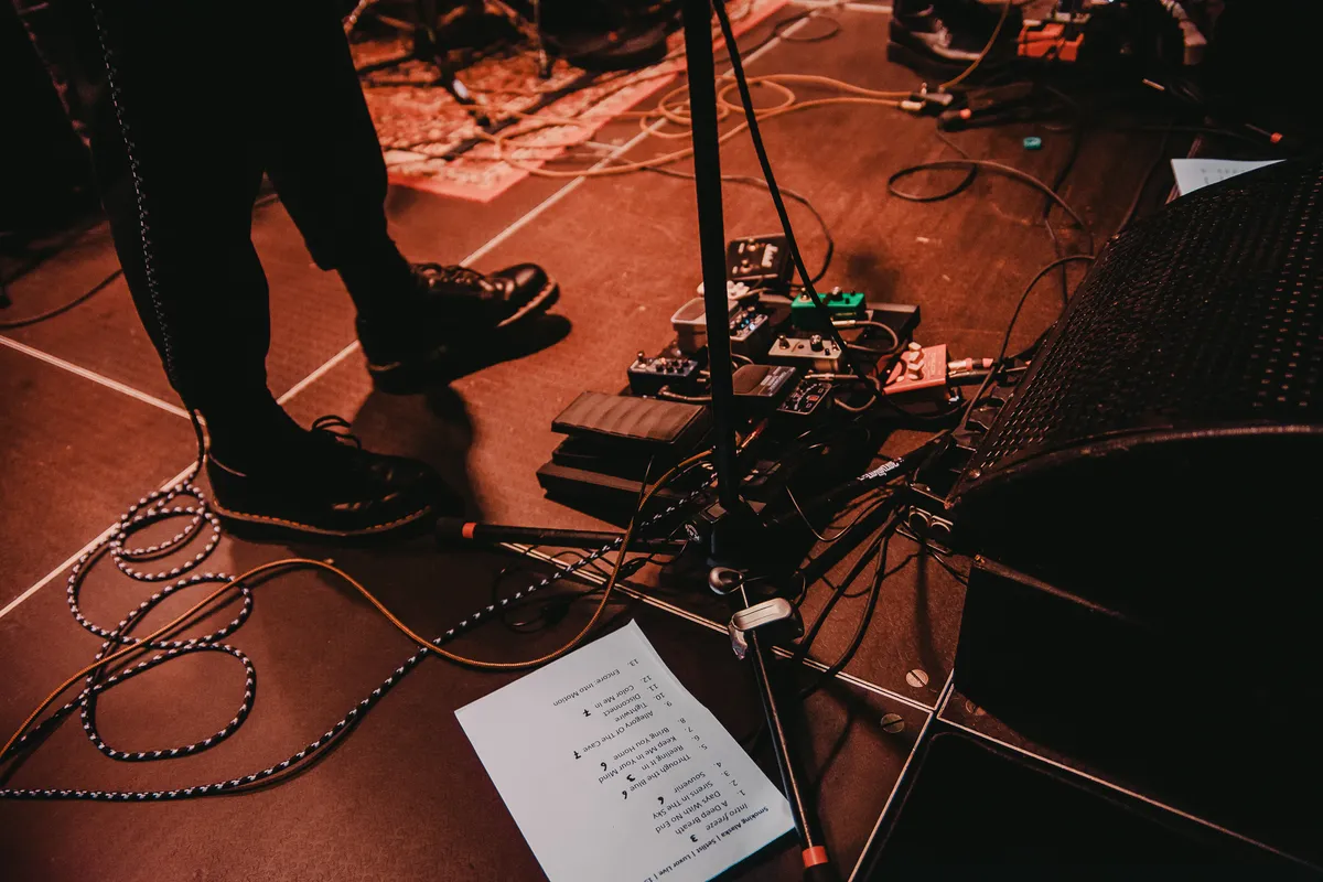 Ook de single uit 2018 ‘Allegory of the Cave’ verrast. Een onheilspellend geluid wordt gevormd door marcherende drums, een distorted gitaar en roepende harmonieuze vocalen die door de zaal galmen. Het doet denken aan een storm die op komst is, gesymboliseerd door de flitsende lichten aan het plafond. Het bijna punk-achtige ‘Tightwire’ dat daarop volgt, bevestigt dit vermoeden. Als een herfststorm dendert het nummer door de zaal.