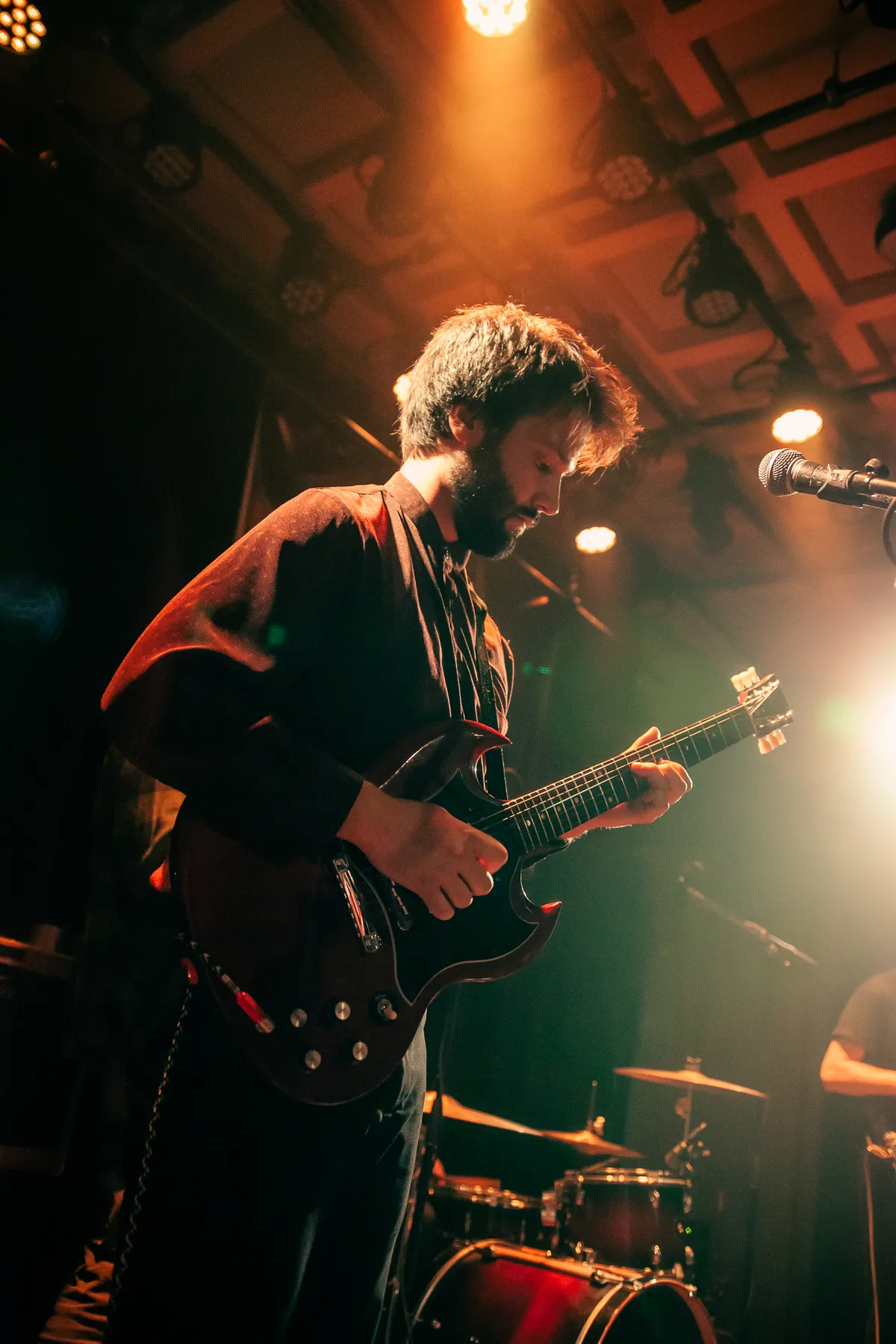 Hoewel het optreden in het teken staat van Days With no End, trakteert de band het publiek ook op ouder materiaal, met als hoogtepunt ‘Through the Blue.’ Een twinkelende gitaartoon wordt onverwachts vergezeld door een solomoment voor bassist Frank Peters, die onder het genot van een joelend publiek zijn plek onder de rode spotlights opzoekt. Een dynamische climax, waarin het publiek meedeint op de golven tussen kwetsbare vocalen, uitbouwende gitaarpartijen en basriffs die in elkaar grijpen en vloeiend transformeren. Het upbeat ‘Keep Me in Your Mind’ schudt het publiek weer wakker. De drums van Wiebe Beernink met stuwende kick in het refrein van het nummer doen hun werk. Er gaat een aantal armen de lucht in en het publiek zingt voorzichtig mee.