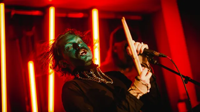 En dat de Rotterdamse mannen een beetje een raar groepje zijn, blijft niet onopgemerkt tijdens hun shows. Die zijn iets wat je het best kunt omschrijven als ‘prettig gestoord’. Dat begint al bij het groengeschminckte gezicht. ‘Dat was eerst een zwaktebod’, maar nu ook wel een beetje een gimmick, geven ze toe. ‘We vinden het leuk als mensen dat kut vinden. Die show en aanstellerij vinden we stiekem wel lekker. Maar als iedereen down is met wat we doen en hoe we eruit zien, hangt er iets in de lucht dat bijna magisch is. Soms krijgen we ontzettend veel energie van het publiek terug. Vooral als we ‘s nachts spelen, dan breekt echt de hel los.’