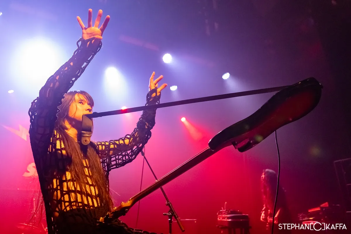 In de zaal van het Koorenhuis staat een menigte braaf te wachten op Caroline Rose. Er is wat uitloop. Tijdens de show wordt langzaam duidelijk waarom dat zo is. Opener ‘Tell Me What You Want’ is met de tekst: “Testing testing, is this thing on,” akelig realistisch, de bandleden horen namelijk niets van het geluid. Met een zichtbare raadselachtige blik slingert Caroline gortdroge opmerkingen de zaal in: “Is everyone satanic here? I have the feeling that every band I’ve seen here is Satanic. Hail Satan! By the way I have a stalker that thought I was satanic.” Goede afleidingsmanoeuvre, wij zien de 666 wel op het pedalboard pronken. De poging om het ijs te breken wordt met een doodse stilte ontvangen, waardoor de songschrijver er uit irritatie een schepje bovenop gooit: “It’s like we’re vaping so hard,” als antwoord op de rookmachine. Songs van album ‘The Art of Forgetting’ passeren de revue, terwijl Caroline met een starre blik het publiek probeert af te lezen. Verwarring alom: “Can you guys hear anything in the room? We can’t hear anything and you guys are so hard to read.” In de zaal is het geluid prima afgesteld en de bandleden zijn op miraculeuze wijze juist heerlijk op elkaar ingespeeld. Vooral bassist Mike Dondero weet met zijn spel zich akelig goed op te sluiten in de drumpartijen. Wauw. Het resultaat is wel dat er grotendeels een statisch optreden wordt gegeven, wat bij thema’s als existentialisme en het opklimmen na een relatiebreuk ergens gepast aanvoelt. Zo introduceert Caroline ‘Miami’ met: “I'm an adult, I’m not going to cry during this next song.” Tegen het einde, als de geluidsproblemen zijn opgelost, vangen we toch een glimp op van hoe het optreden had kunnen lopen. ‘More of the same,’ ‘Jeannie Becomes a Mom’ en ‘Feel The Way I Want’ worden bijgestaan met kekke dansjes, een dikke glimlach en een laatste gortdroge opmerking: “We’re gonna play our greatest hits now.” Zo’n eigenzinnig hoogtepunt hebben wij bij de redactie nog nooit meegemaakt.
