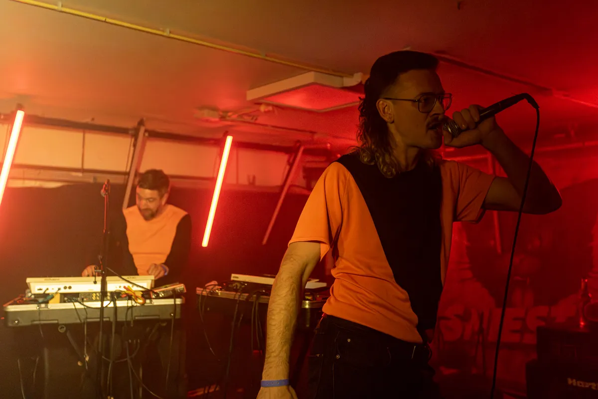 De Gruizige Glazige Gitarenroute dag één loopt bijna ten einde, Staatseinde welteverstaan. Het elektroduo vindt zijn logische plek in Grey Space. De kelderruimte past de band als een warme jas. En probleem- noch moeiteloos bliept en bonkt Staatseinde alle Sniesteraars tot een audio-orgasme. De New Wave van deze nieuwe golf mag en moet er zijn. Staatseinde heeft een prachtige muzikale traditie en toekomst te verdedigen. En op dit uur en in deze ruimte komt dit allemaal tot een wervelend hoogtepunt. Er rest eigenlijk niets anders nu dan vredig in te slapen om weer op krachten te komen voor dag twee. Welterusten.