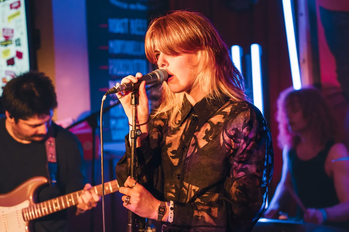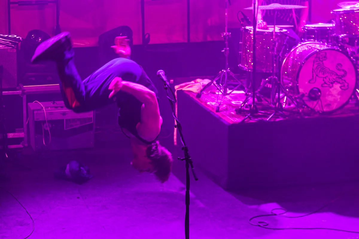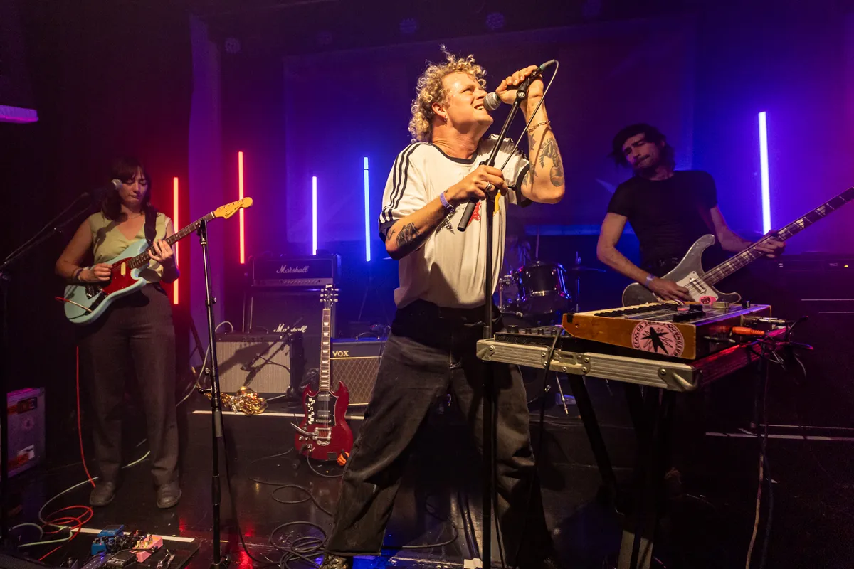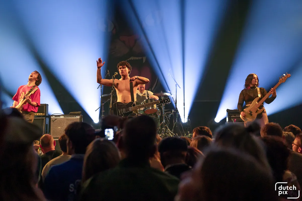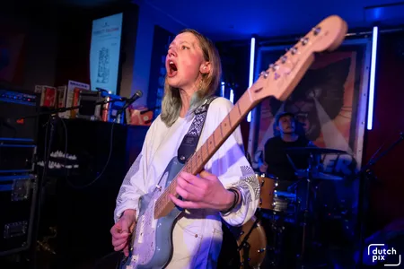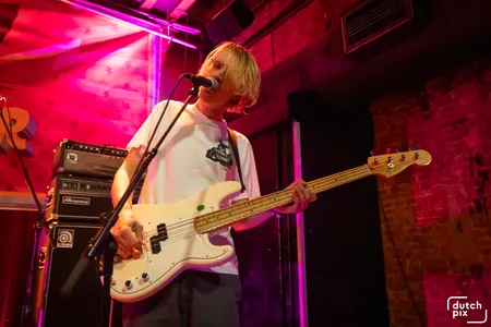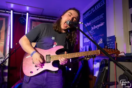 Terwijl het buiten regent dat het giet, wordt het met de minuut warmer in September. Het Britse noiserocktrio Bo Gritz speelt een harde, snode en slimme set van uptempo, maar ook catchy tracks die in goede aarde vallen bij het aandachtige publiek. Er worden veel nummers gespeeld van het vorig jaar verschenen debuutalbum Chroma. Als Bo Gritz uit een ei komt van Bach, dan is dit die zoon die zich keihard afzet tegen zijn vader. Het vierde kind uit zeven, waarbij zes en zeven nakomers en een tweeling zijn. Altijd over het hoofd gezien voor de aandacht, nooit voor het werk. Maar deze boze zoon doet meer met papa’s werk dan hij door heeft. Waar papa Bach melodieën als contrapunt neerzet, maakt Bo Gritz losse regelmatige ritmes en dreunen met hun instrumenten. Als een soort spoken word punk, worden teksten gelardeerd door de pilaren van noise. Dit is meer Public Image Ltd. (P.I.L.) en minder Sex Pistols zogezegd. De zaal kan met deze muziek wat ze willen: pak het ene of het andere ritme of pak de energie die eronder rommelt. Publiek beloont Bo Gritz met dansjes, moshpits en enthousiast geknik. Dankbaar voor de ontvangst, speelt Bo Gritz enthousiast door tot het laatste nummer. Ieder nummer lijkt iets harder dan het nummer ervoor. Met een beuknummer van de eerste EP neemt het trio afscheid en laat een dankbaar publiek achter. Met welke boodschap het publiek naar huis gaat? De diepe tekstflarden poëzie van Bo Gritz hebben wij nog niet helemaal verwerkt, we laten het nog weten. Op naar de afterparty.