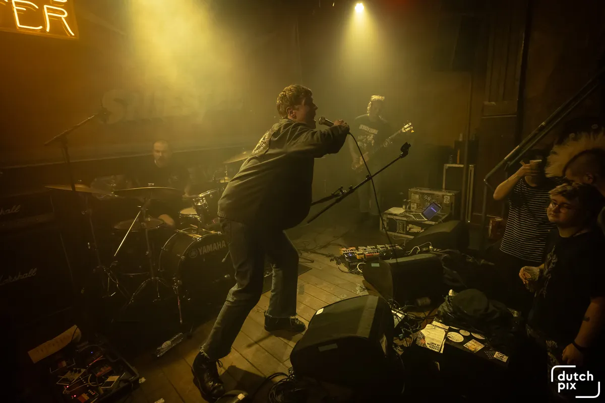 Als ze vragen wie ze kent gaan er een stuk of tien handen omhoog in een vol café. ‘More than expected!’, zegt de frontman. In Europa touren is een droom die uitkomt, vertelt de band, die duidelijk al lang uitkijkt naar dit moment waarop ze een van de hekkensluiters van Sniester mogen zijn. Dat enthousiasme blijkt ook uit hun energie tijdens de show, als ze vanaf het eerste moment meteen los gaan. Met wederom drie gitaren kan er heerlijk geragd worden, terwijl de drummer zijn drumstel toetakelt alsof het hem geld schuldig is.