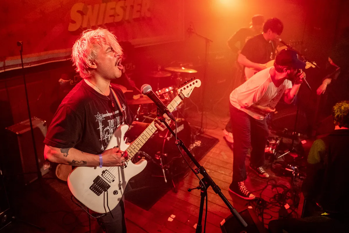 Smerigheid kent vele gedaantes. Het kan positief en/of negatief uitpakken. Het is maar net hoe je ertoe verhoudt. Analoog aan Shakespeares Hamlet: ‘Er is geen goed of slecht, maar het denken maakt het ervan.’ En het denken over smerigheid is op deze eerste Sniesterdag vrijwel nonstop positief. Het enige negatief-smerige is het weer. Terwijl de stad wordt getooid in een zompige miezerdeken en de lucht zwanger is van petrichor, wordt er binnenin alle Sniestervenues kei- en keihard gespeeld. Alsof alle bands hun energie een tijdlang hebben ge-edged en het vanavond in alle smerigheid kan worden uitgestort over een hartstochtelijk hongerig publiek. De roes van de eerste Sniesterdag was terecht smerig meeslepend. De gitaren waren hard, de stemming opperbest en Sniester bewees waartoe het op aard is: een harmonieuze lawaailawine zijn voor lustig volk met een welbegrepen voorliefde voor smerige riffs, cut-the-bullshit-teksten, dikke hooky beats of drumwerk. Wat een feest.