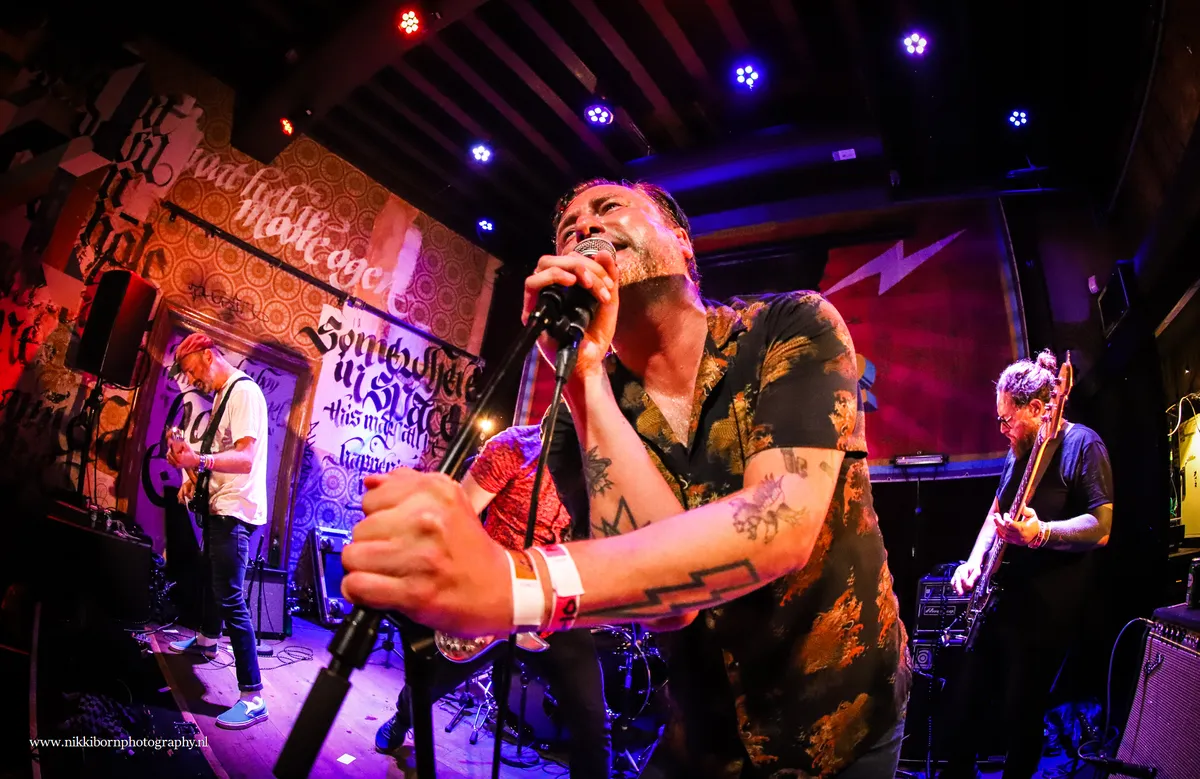 “Dat is toch die guy van tv?”, horen we in het publiek, en dat klopt, want dit is de band van Dennis Weening. De kenners weten natuurlijk dat hij lang voor hij Expeditie Robinson presenteerde al in vele Haagse punkbands speelde. Het duurt even voor het geluid op orde is maar de band heeft er zin in. Als het na een paar nummers eenmaal goed klinkt, bereikt de energie op het podium nieuwe hoogtes en wordt in de zaal lekker gemosht. Wat ook fijn is: de band weet wanneer het tijd is om te stoppen. In plaats van sommige acts die wel erg lang doorgingen klinkt bij Burnout Boys al enkele minuten voor tijd de laatste toon en laat Weening zich bezweet lekker theatraal van het podium vallen.