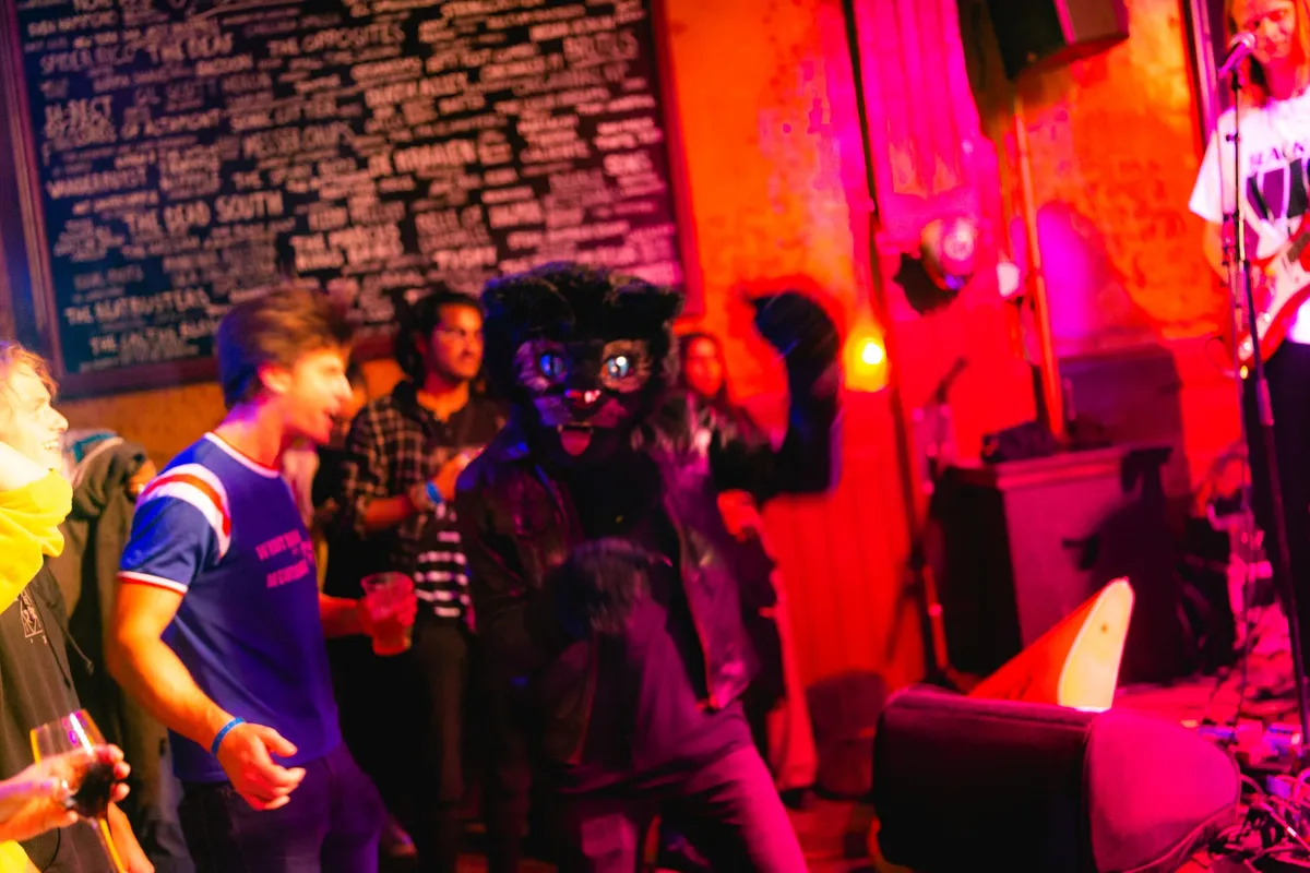 En dan. Speedmobile. Vergeet alles wat je hiervoor hebt gelezen, want in de Zwarte Ruiter, bij de laatste act van de vrijdag, gaat het pas echt los. Niet heel gek, want we hebben hier te maken met de ritmesectie van Peter Pan Speedrock en de gitarist en zanger van Batmobile. Tientallen jaren aan rockervaring. De band speelt rock ‘n’ roll in de hoogste versnelling en de Ruiter kolkt. Een kleine vrouw loopt met een bloedneus weg, maar staat een paar minuten later weer vrolijk te kijken. Bier vliegt in het rond. Als er iets bestaat als het Sniestergevoel is dit het. En dan, om twaalf uur, is het afgelopen. Potverdorie, wat hadden we dit gemist. En morgen mogen we weer.