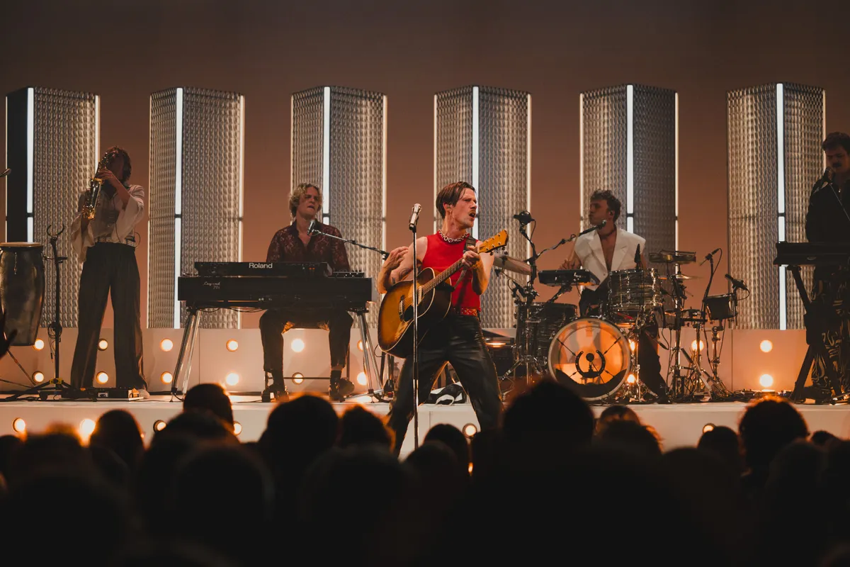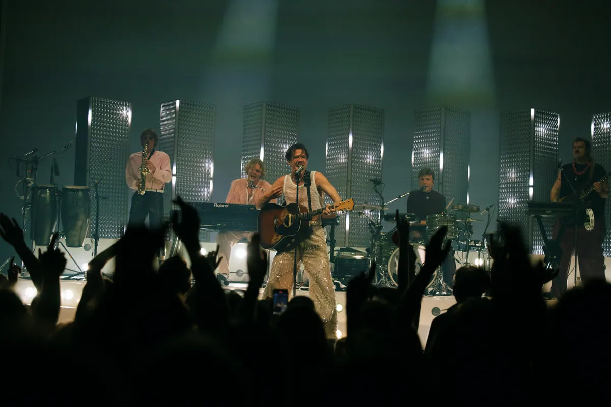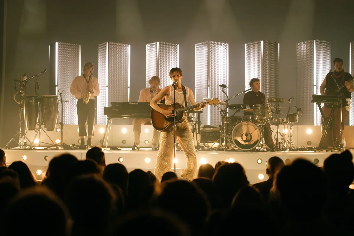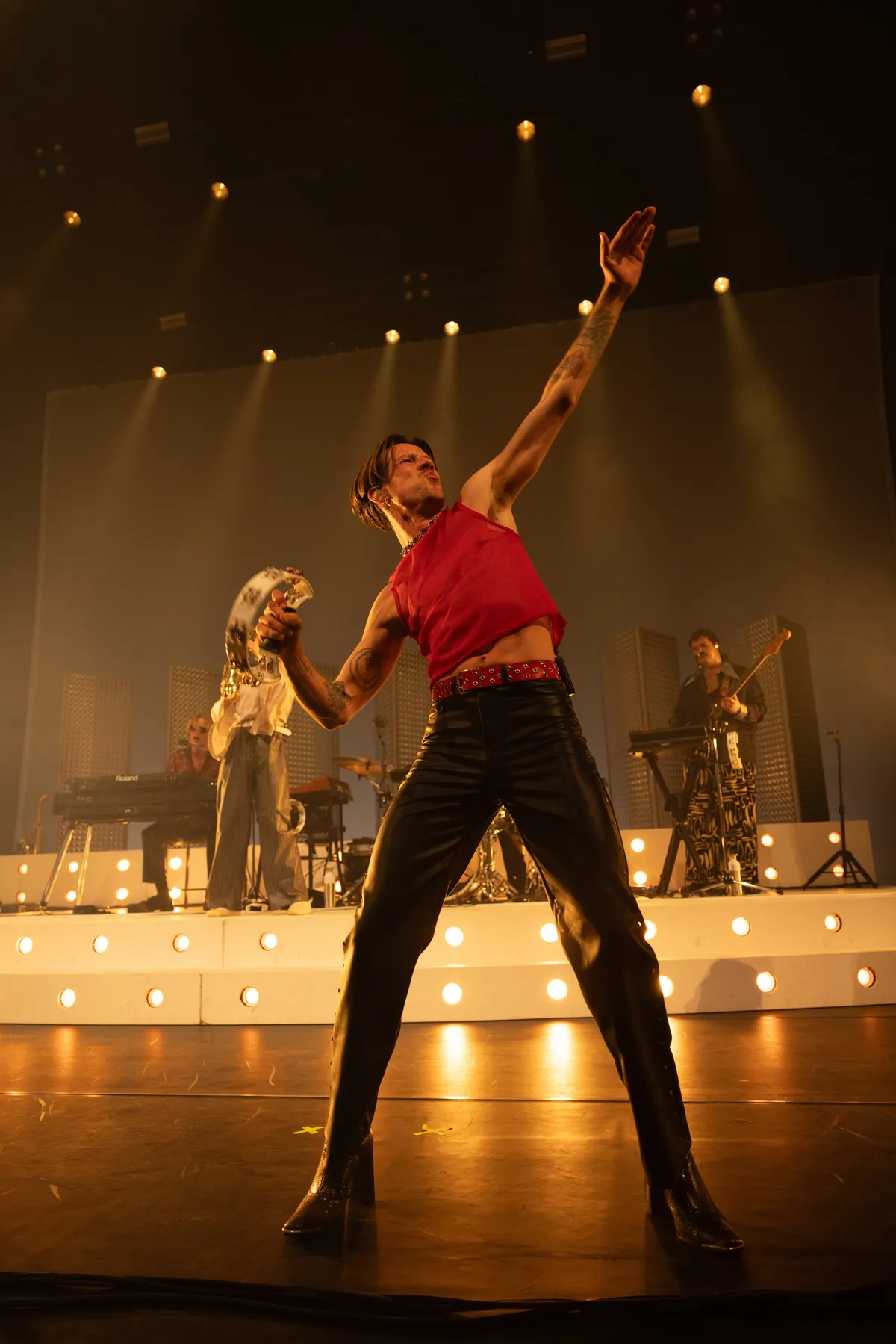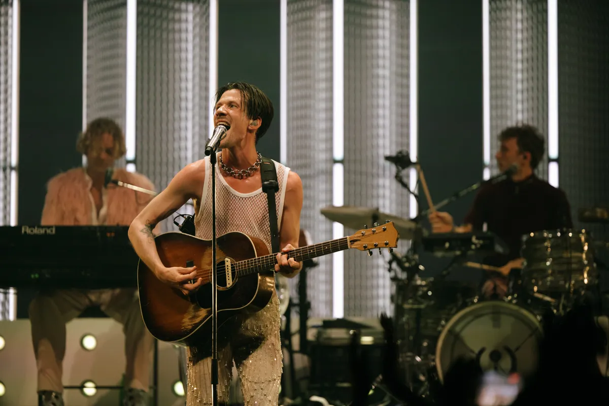 De enkeling die nog niet aan het bewegen is, doet dat wel bij het nummer waarmee de band doorbrak bij het grote publiek in 2022: ‘Multicolor’. Voor dit nummer heeft de band zich razendsnel omgekleed. De leren broek is ingeruild voor een glitterbroek en zwarte bontjas. De energie is hoog en het publiek swingt.