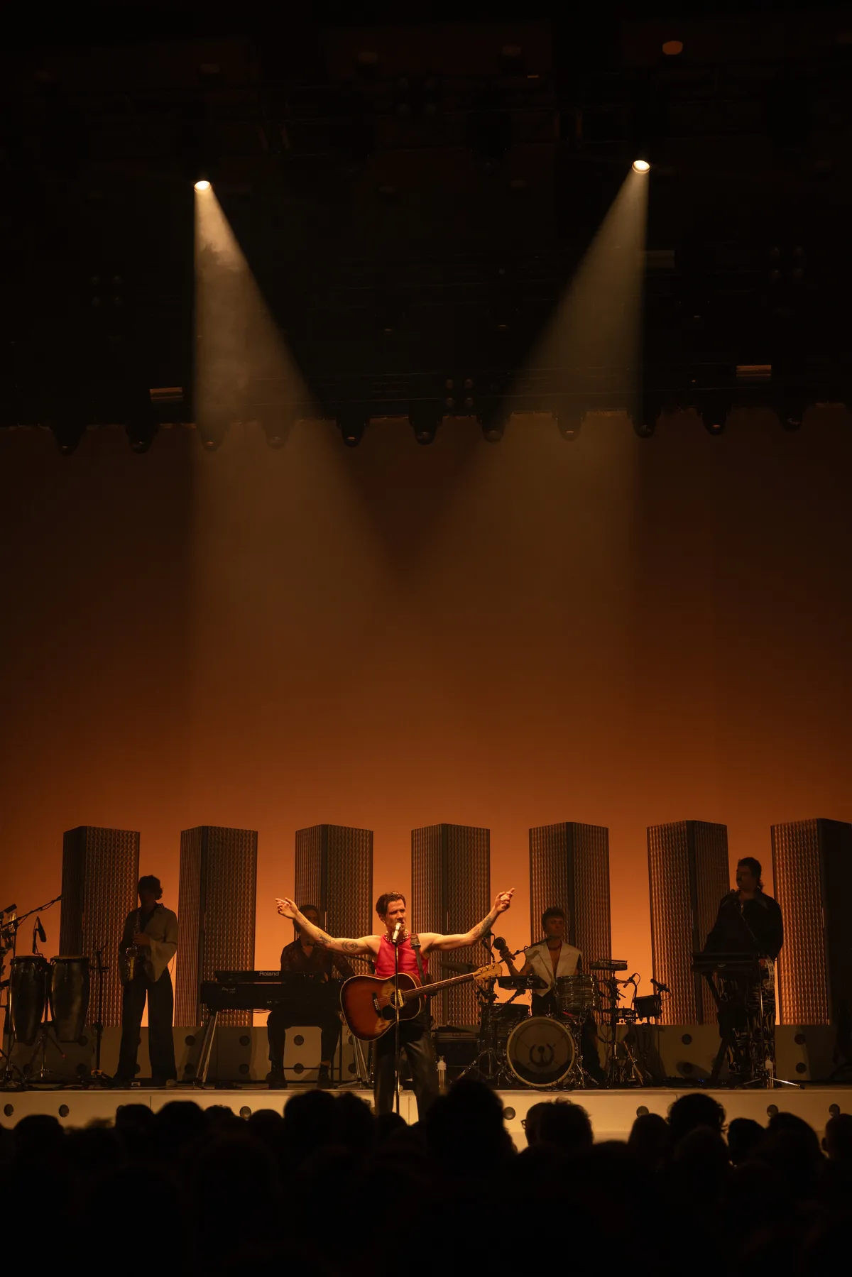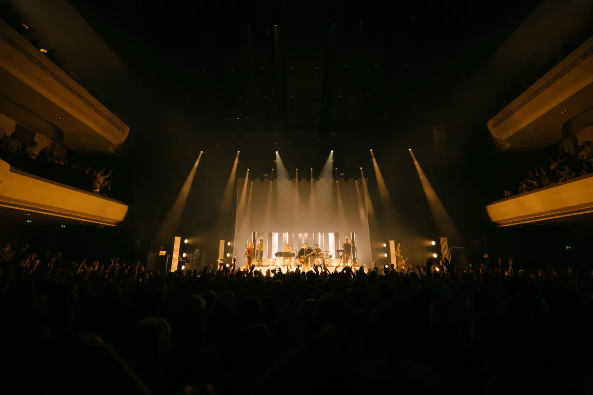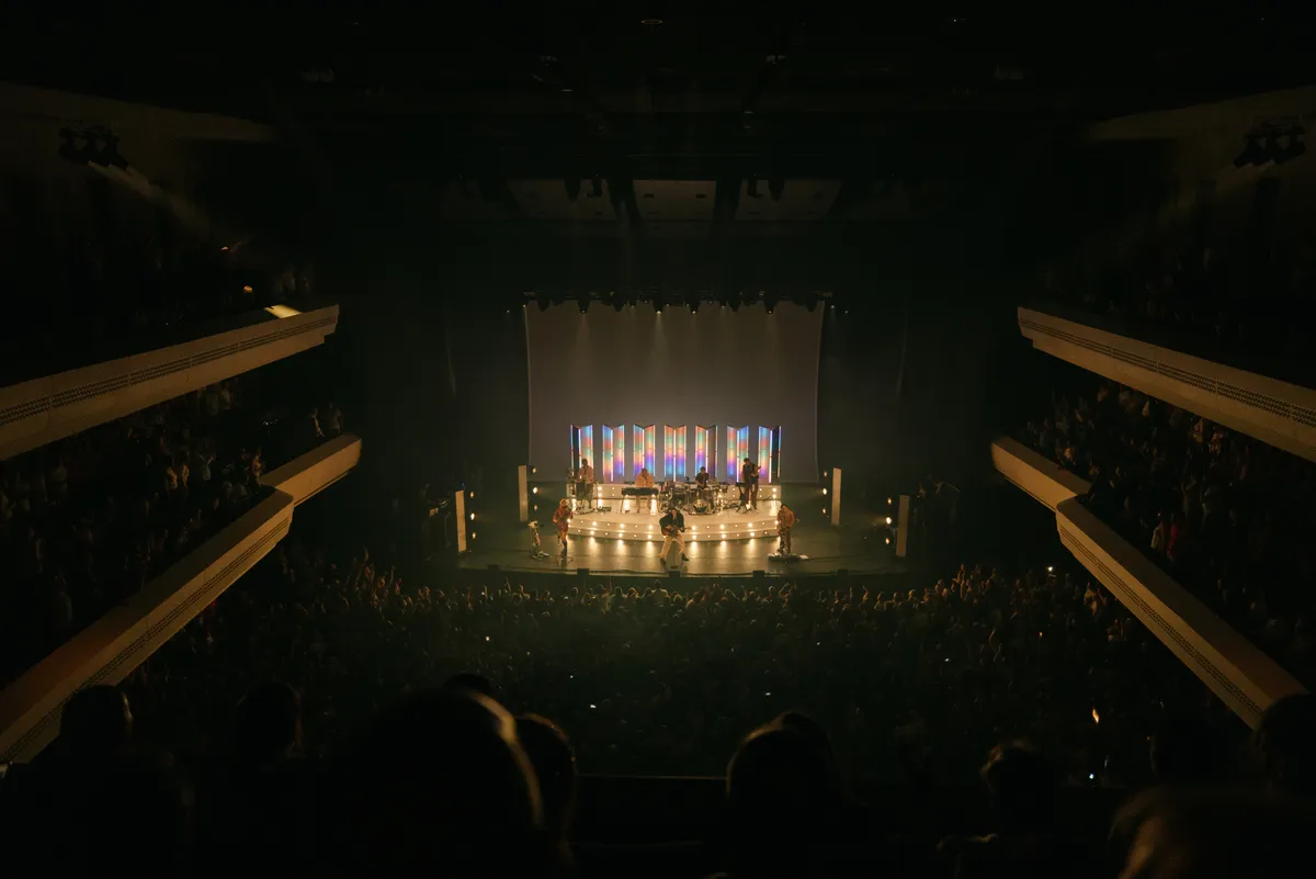Amare heeft een andere ambiance dan PAARD, waar Son Mieux afgelopen jaar optrad. Op het moment dat je het cultuurpaleis binnenstapt, roept het enorme gebouw al het gevoel op dat je vanavond een groots concert gaat beleven. Het is een nieuwe mijlpaal voor Camiel, die ooit begon als een puber in een bontjas. Toen waren de shows kleiner en was er meer ruimte om de diepte in te gaan. Nu zijn het megaproducties en geven de shows Robbie Williams en Mick Jagger vibes.