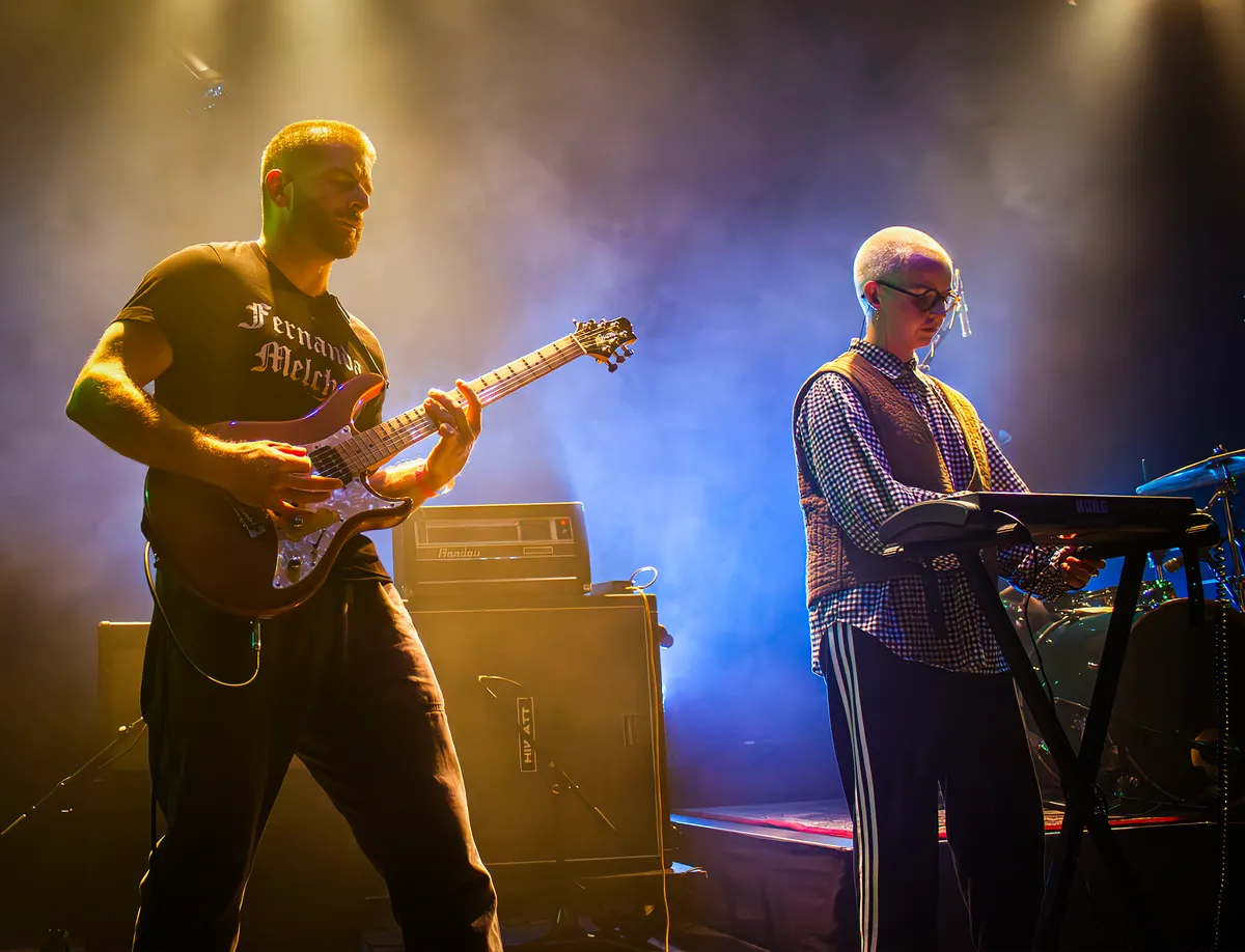 In de grote zaal worden we vervolgens meegenomen op een meeslepende ruimtereis door The Cosmic Dead. Wie bekend is met het genre weet met albumtitels als Scottish Space Race, The Intergalactic Connection en Infinite Peaks eigenlijk al genoeg: no nonsense space rock, zorgvuldig laag voor laag opgebouwd als een heuse maanmissie. Drie hele nummers krijgen we, waarin de vier muzikanten de tracks als stuwraketten vooruit blijven knallen. De elektrische viool van Calum Calderwood mag dan de eyecatcher zijn, het zijn de hysterische synths van Luigi Pasquini die er echt een meeslepende beleving van maken.