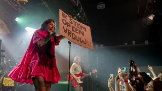 Even later slaat de show om in pure chaos tijdens ‘Let me tell you something 'bout my country’, wat klinkt als een kruising tussen ‘Girls’ van The Dare en een punkband die per ongeluk in een countrybar is beland. Het voelt bijna fout hoe goed het werkt: Sophie steekt in haar Steenkolenengels een grote middelvinger op naar Nederland en haar misdaden en medeplichtigheden. Ze laat zich niet begrenzen. Niet door politieke onkunde, verwachtingen, en ook zeker niet door genres. Tijdens het ruim dertien minuten durende ‘Gebroken Spiegels’ schakelt ze moeiteloos van ballad naar rock naar punk en weer terug. Hoewel haar stem an sich geen schoonheidsprijs verdiend, geeft ze de Hall wat het wil: kraken en afkeren.