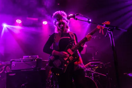 Er is geen tijd om je op je gemak te voelen, want onder begeleiding van een sterke ritmesectie galmt er een onheilspellend gitaargeluid de ruimte in. Tijdens ‘Bright’ vindt er zo’n intens samenspel plaats, dat het meer dan duidelijk is dat we hier niet kijken naar Euroboy + Alicia Breton Ferrer, maar een krachtige eenheid. Het geheel snijdt en schuurt. Tussen alle ernst door verschijnt er dan toch soms nog een grijns op de gezichten van de bandleden. Ze weten maar al te goed wat een storm ze veroorzaken.