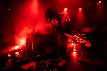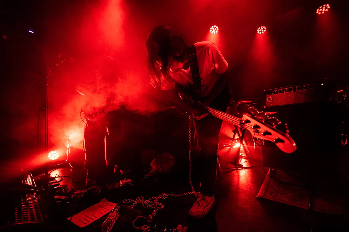 Sacrificial Chanting Mood opent de avond met een dreigende zelfverzekerdheid, die meer dan terecht is. Het bijtende postpunk duo bestaande uit Alicia Breton Ferrer (The Sweet Release of Death en Neighbours Burning Neighbours) en Doortje Hiddema (Euroboy, Real Derek en Rats on Rafts) introduceerden eerder deze maand nog hun gezamenlijke EP. Na een heen-en-weer-samenwerking via WeTransfer weten de twee geliefde namen uit de Rotterdamse undergroundscene een uitbarsting van zigzaggende gitaren en baslijnen neer te zetten. Ze schrijven over alledaags leed, terwijl ze streven naar een kluizenaren bestaan. Op het podium trekken ze zich echter alles behalve stilletjes terug.