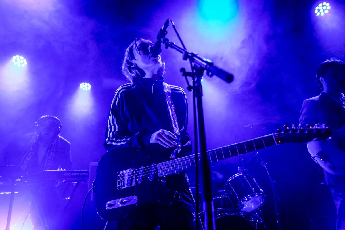 Vanuit het donker naast het podium staat Sorry ons al aan te kijken, terwijl ze een brutaal intro nummer door de zaal laten blazen (‘Girls’ door The Dare). Jeugdvrienden Asha Lorenz en Louis O’Bryen uit de Noord Londense scene zijn berucht om een koelheid die als desinteresse kan overkomen. Een eigenzinnigheid die al duidelijk is vanaf het moment dat ze het licht instappen. Frontvrouw Asha treedt nonchalant in positie, gekleed in een shabby trainingspak met beide handen in haar zakken, terwijl de rest van de band juist te formeel is gekleed in kostuum. Het vijftal is ironisch, maar maakt geen grappen. Afstandelijkheid is een groot deel van de aantrekkingskracht van Sorry. Het is iets wat doorbloedt in hun teksten en in hun dissonante geluid. Ondanks deze ogenschijnlijke terughoudendheid laten ze ons toch in hun persoonlijke ruimte, waar ze zich comfortabel genoeg voelen om een deel van zichzelf te delen.